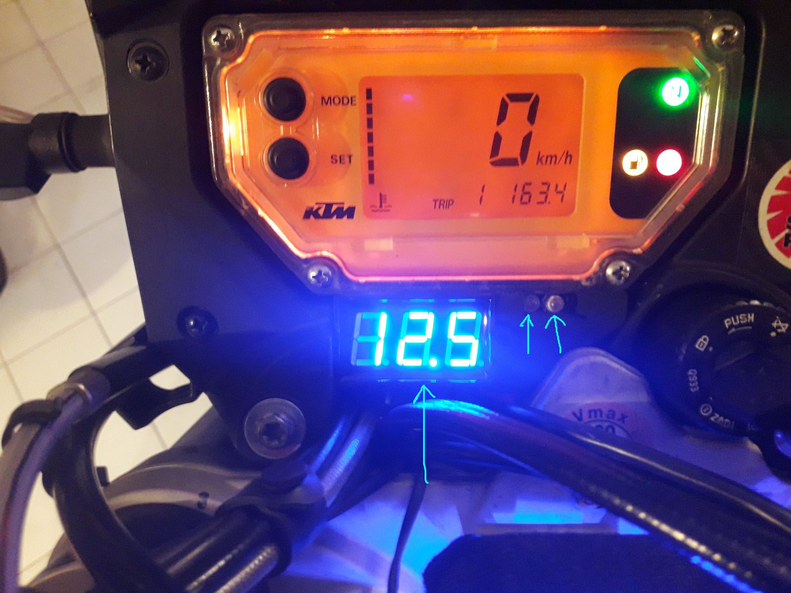 - Voltmeter und noch 2 Led die mir anzeigen "Abblendlicht" und "Ventilatoren laufen"