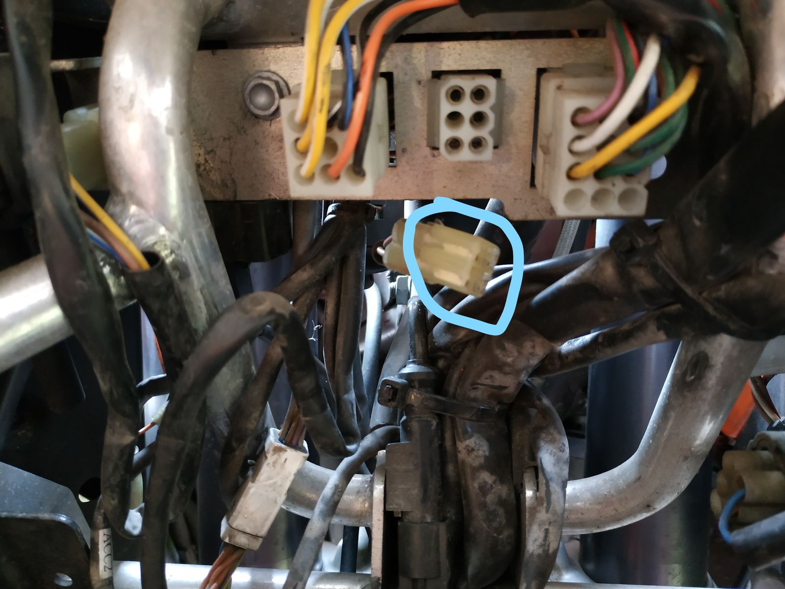 Ich kann zwar auf dem Bild nix erkennen, aber von der Position her sollte es der 4 polige Stecker ( C_AN/4 ) Tripmasterschalter sein. Wenn ja sind die Farben gelb, gelb-braun, rot-grün und braun.