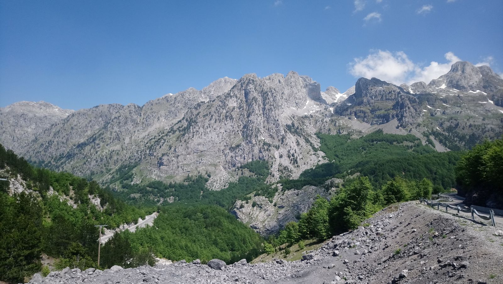 Dann ging es eine wunderschöne schmale Asphaltstrecke Richtung Theth. Die Strecke geht dann in Schotter vom Feinsten über. Atemberaubende Ausblicke auf die Bergwelt von Albanien. wub