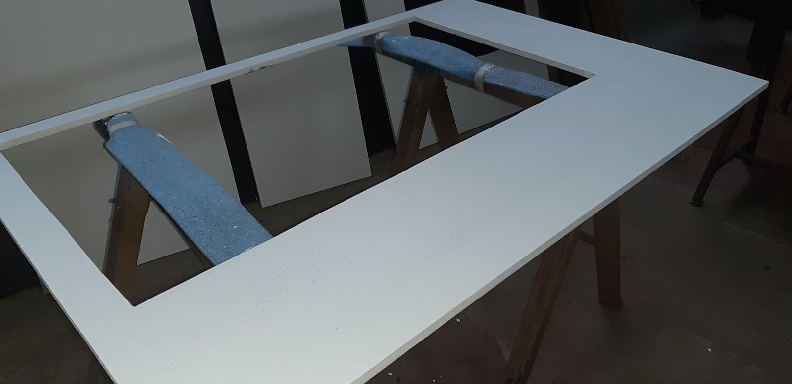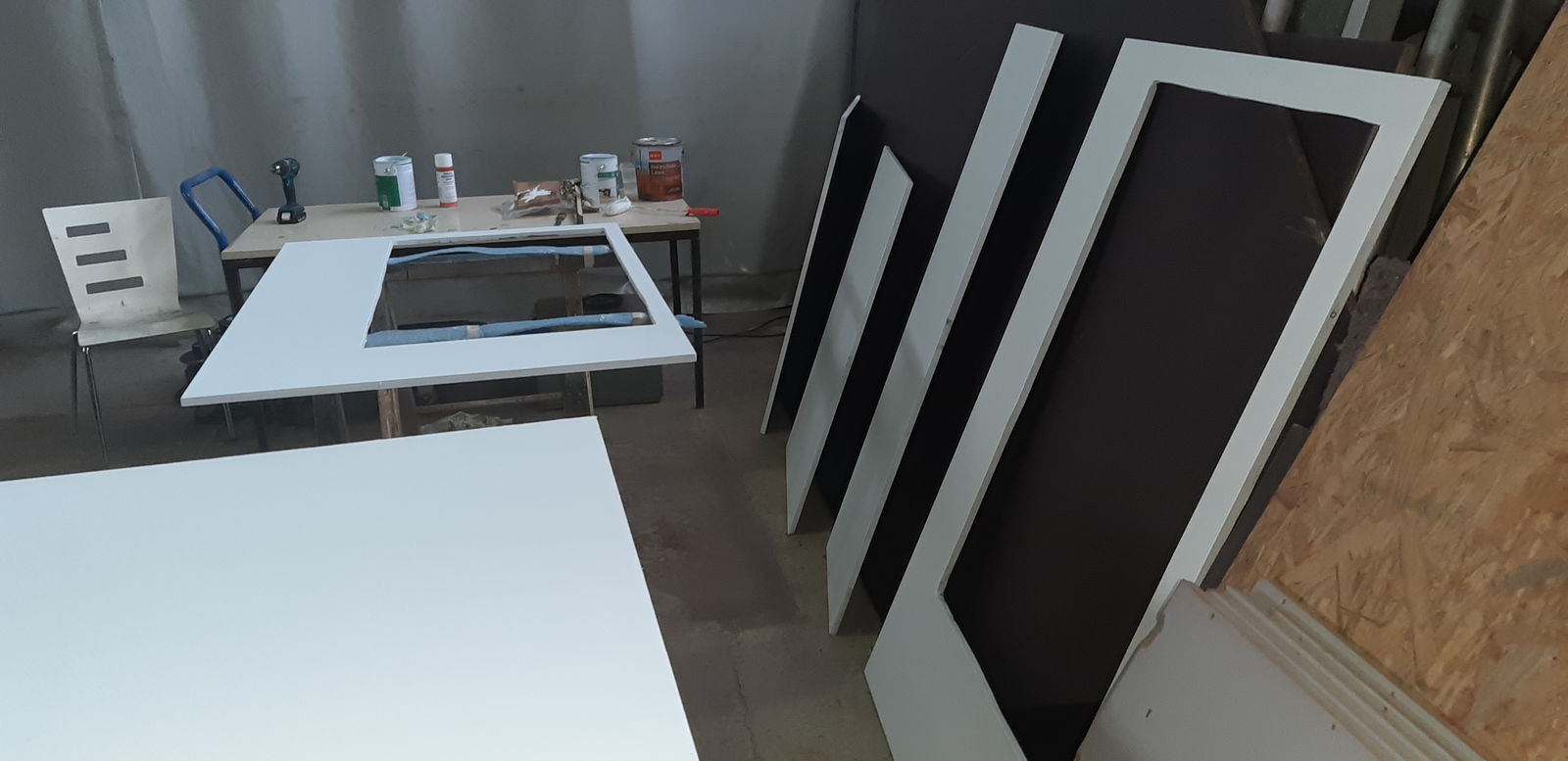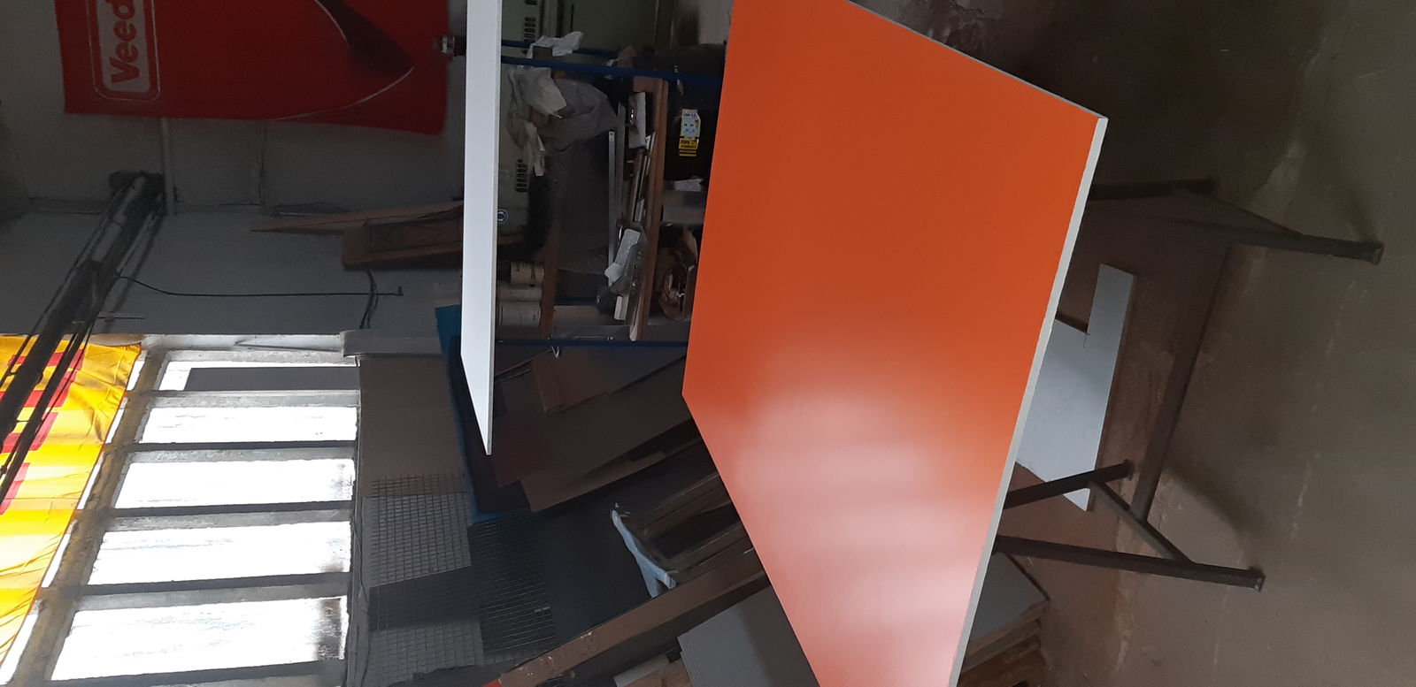 Jetzt wurde es Zeit das ich die Holzplatten auf der rauen Seite mit Farbe musste. Also teure Vorstreichfarbe und ein passenden Glanzlack mit der Rolle auftragen . Alles vorher anschleifen und mit Aceton und Silicon-Entferner abwaschen.