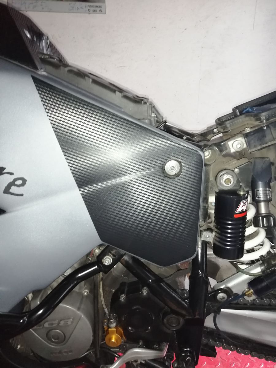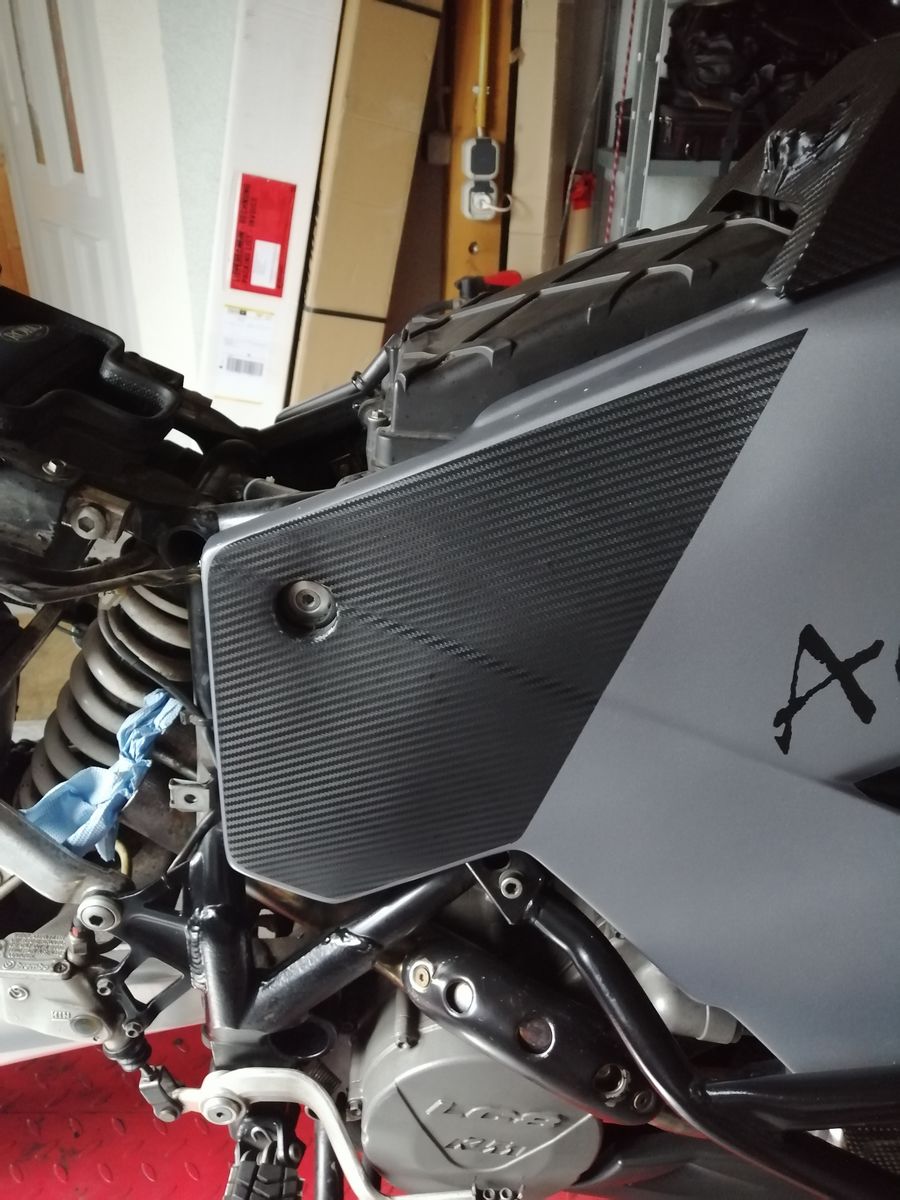 Da ich vermute, dass ich mit diesem Problem nicht der Einzige sein werde, stelle ich mal mein entstandenes Resultat hier ein. Von mir wurde eine Car Wrapping Folie mit Carbon Optik verwendet. Sieht m.M. nach nicht schlecht aus