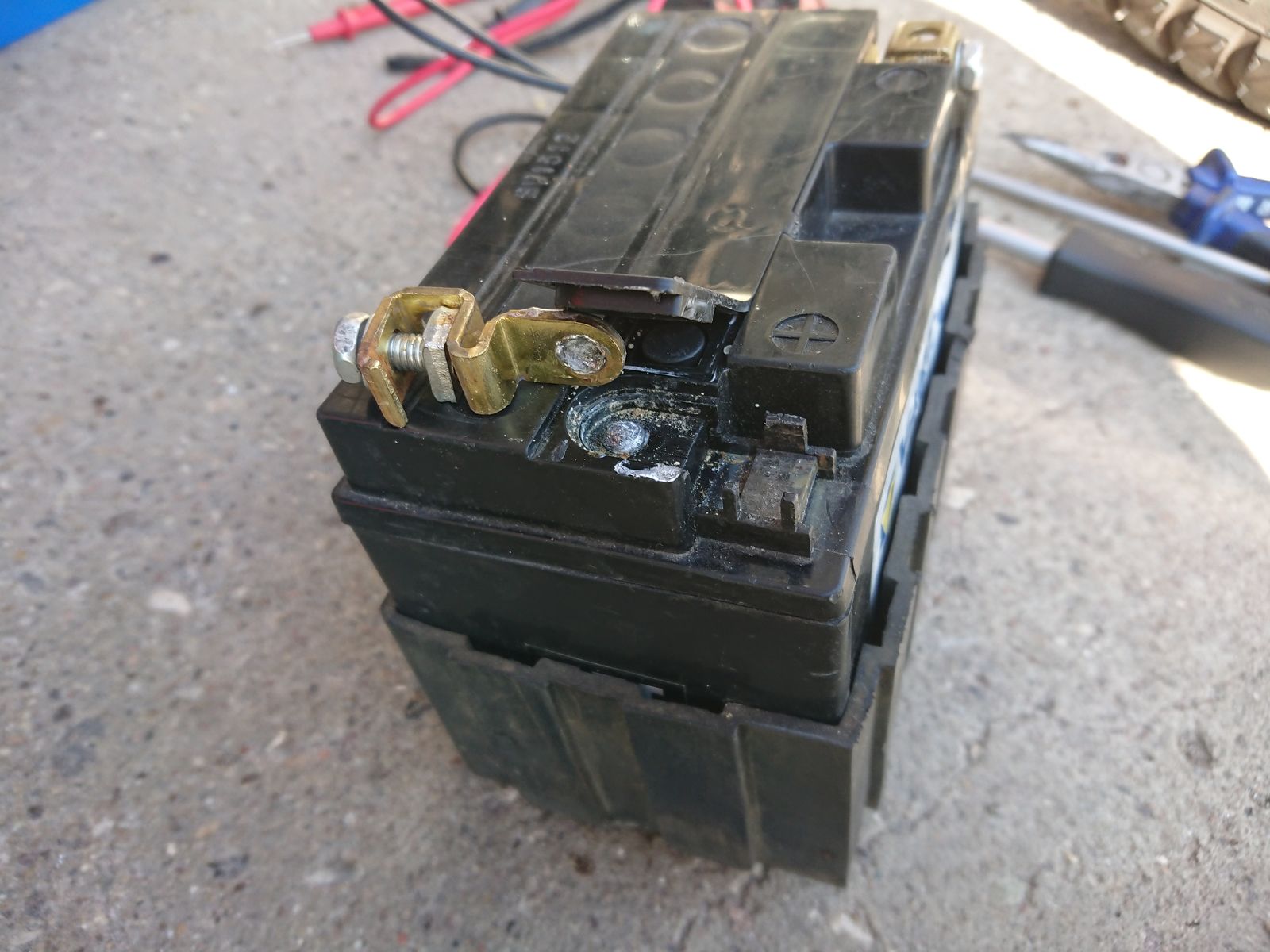 Die Batterie stand die letzten Wochen im Keller und hat eine lange Erhaltungsladung genossen. Ruhespannung war stabil bei 12,7V. Nach dem Einbau und einem Startversuch: 0V am ganzen Moped. Batterie ausgebaut, gemessen: 12,7V. Gewundert und wieder eingebaut, gemessen: 0V.