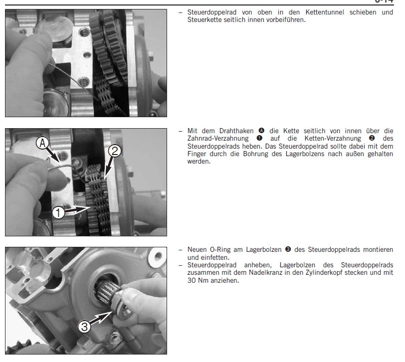 Die Steuerkette schaut ja nicht (wie bei den 1190ern) oben aus dem Zylinderkopf heraus, wenn der Ventildeckel demontiert ist.