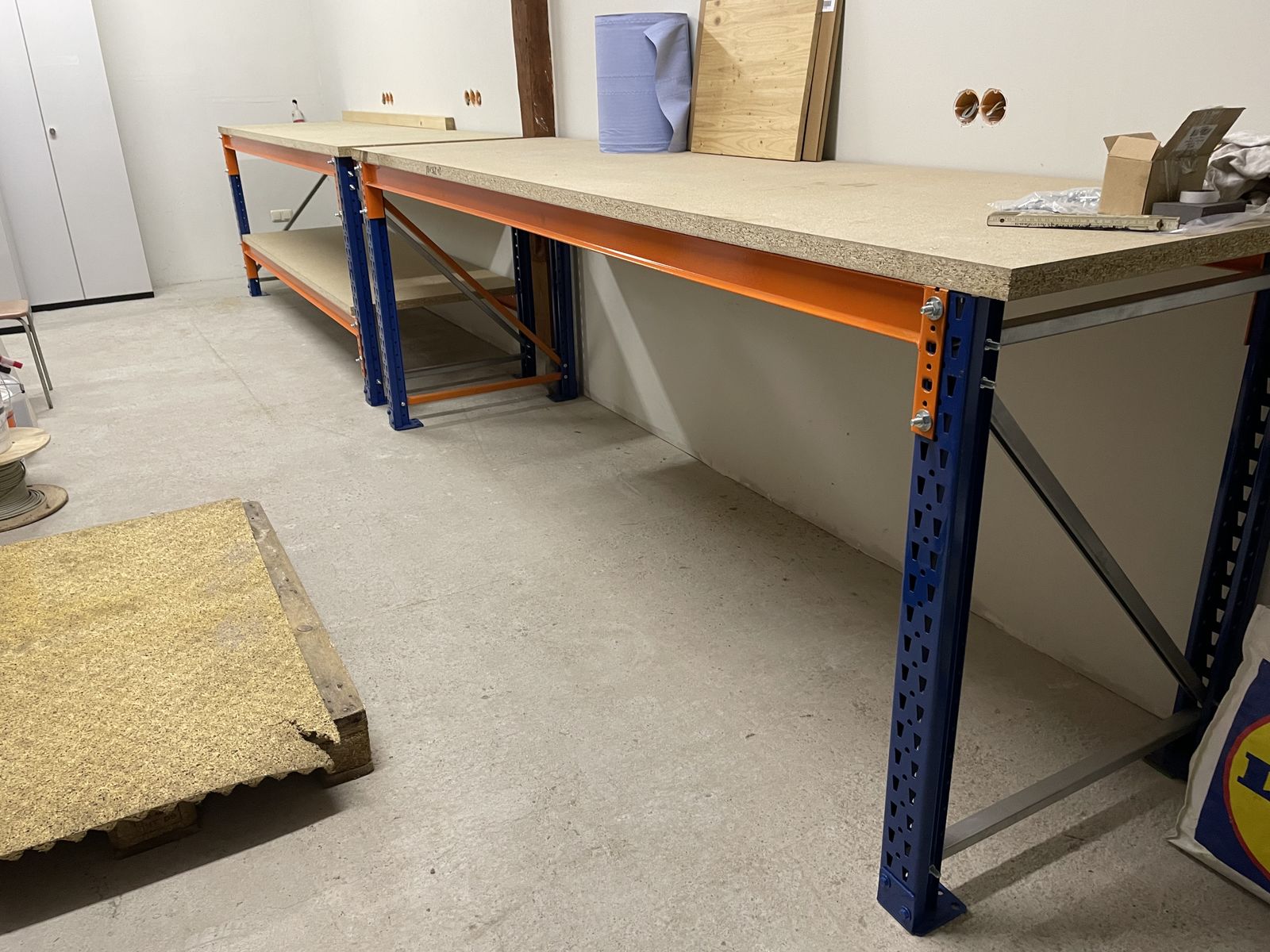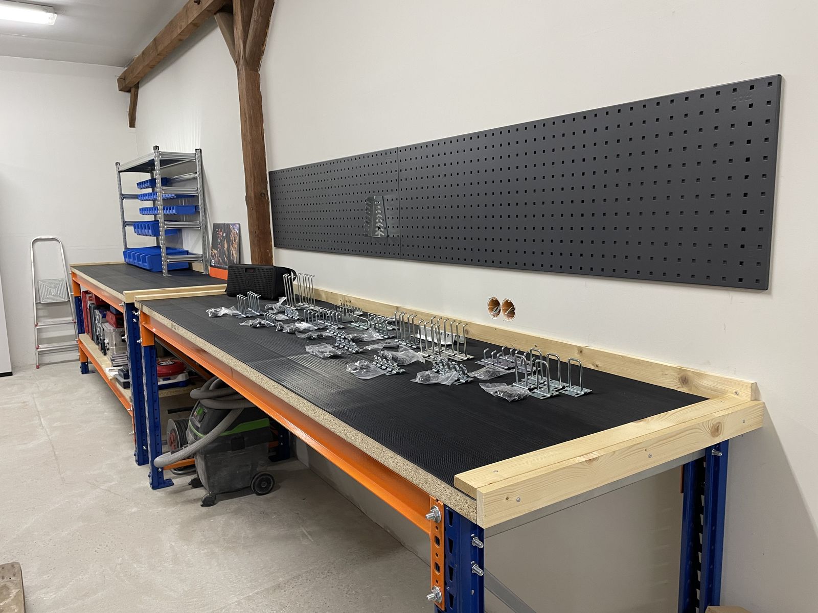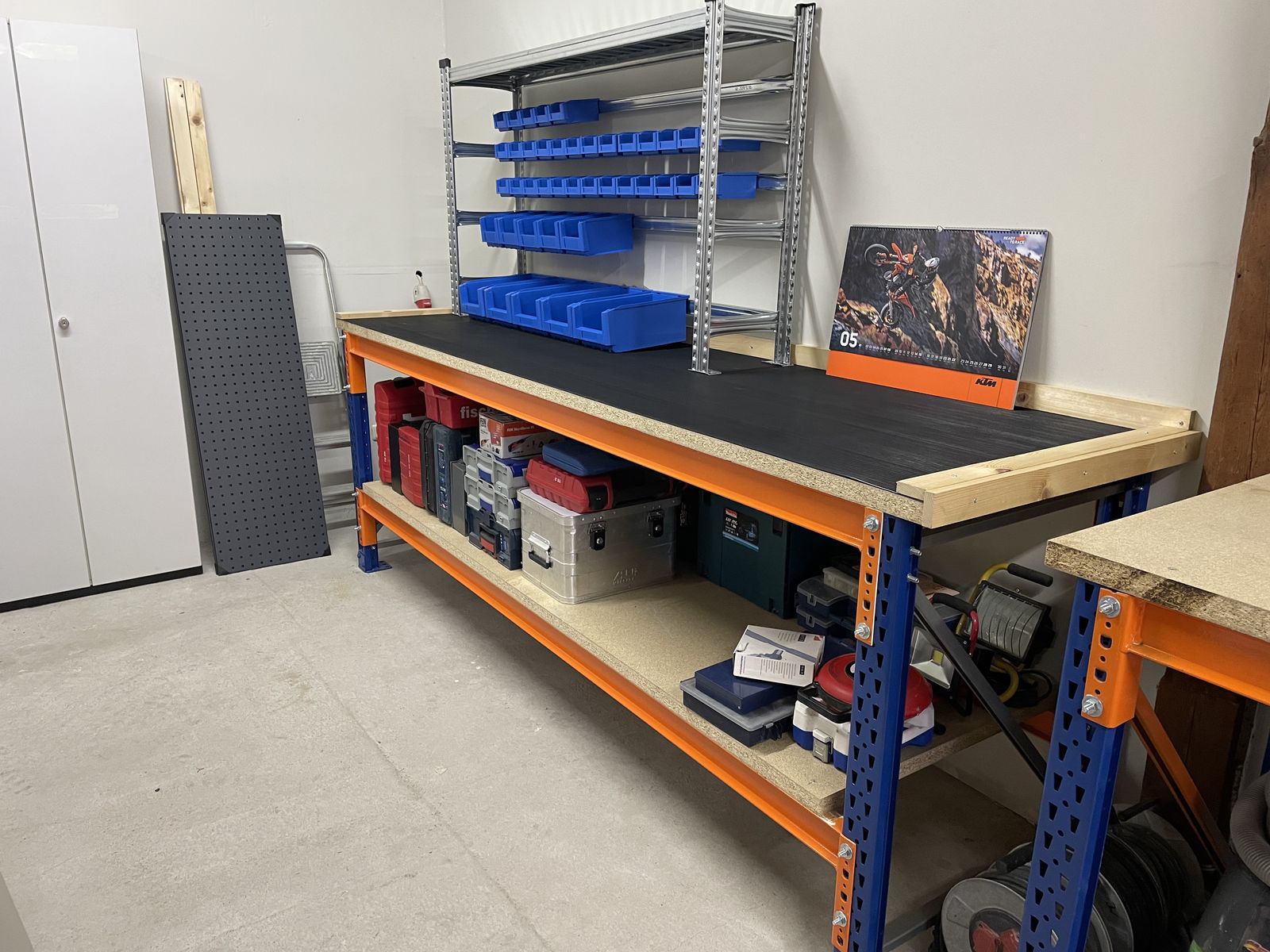 Ursprünglich waren es mal Schwerlastregale…selbst umgearbeitet und nun tun sie ihren Dienst als Werkbänke.