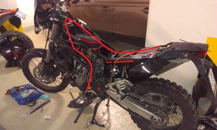 3: In der Anleitung wird die Entlüftung bis zum Lenkkopflager geführt damit auch bei vollen Haupttanks nichts übergehen kann. Aber da steht doch dann in der Entlüftungsleitung an der tiefsten Stelle immer Sprit, spätestens nach dem ersten Wheelie. Das gefällt mir mal garnicht. Was spricht dagegen an der höchsten Stelle vom Zusatztank einen Entlüfternippel zu verbauen? Solange der Benzinhahn zum Hecktank erst bei leeren Haupttanks geöffnet wird kann nichts passieren. Aber was passiert wenn alle Tanks voll sind und der Benzinhahn doch mal offen ist? Sollte das Ventil doch eigentlich verhindern, dass etwas übergeht???