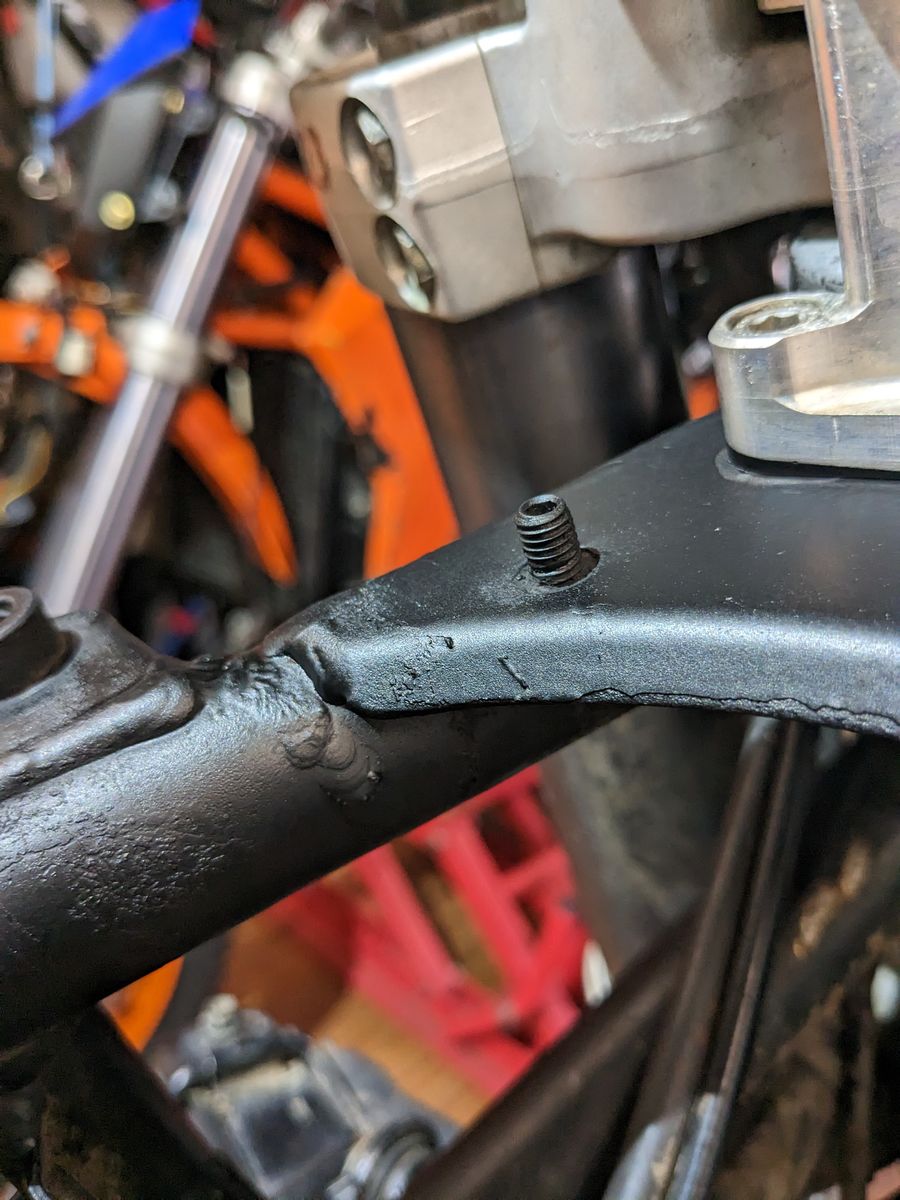 Schweißen wäre mir zu heikel gerade auch für eine Sportveranstaltung, nachdem beide Rahmenrohre durch sind war da viel Bewegung hinterm Lenkkopf. Wer weiß, was da noch unsichtbar schon geschwächt ist.