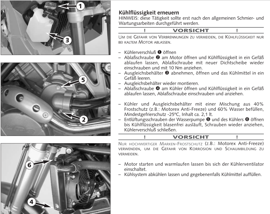| Hallo, meine relativ Neue 990 EZ 12.05, 27107 Km drückte heute nach dem Abstellen über den Überlauf vom Ausgleichsbehälter fast das kptl Kühlwasser aus diesem. Hatte bei meiner Frankreich-Spanien-Frankreich Tour mal im kalten Zustand zu wenig im Ausgleichsbehälter drin, nach dem Nachfüllen dann zuviel, letzte Woche i.d. TG großen Fleck unterm Moped, Tanks etc. alles runter aber keine Undichtigkeit grfunden. Also alles wieder zusammen gebaut und bis Mitte Ausgleichbehälter aufgefüllt, wenn warm, Stand das Wasser bis fast Oberkante Behälter, lief aber nicht raus, wenn kalt, dann wieder bis zur Mitte. Bis heute wieder das Wasser raus wollte, deutet auf Überdruck hin?! : Hat jemand eine Idee? Grüße
