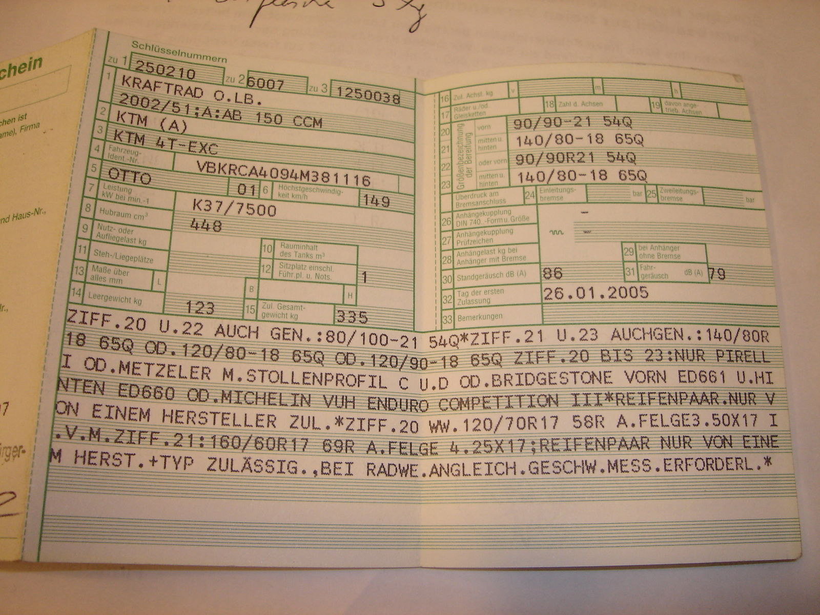 gibt es bei meinem KTM -Händler Tepper für 300,- eingetragen da er das abgasGutachten für 2500,- € gekauft hat