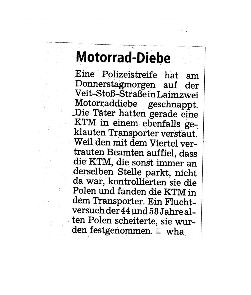 Die Polen haben es wohl übertrieben. Geklauter Transporter und geklautes Mopped. Ob die an der nächsten Tankstelle bezahlt hätten?