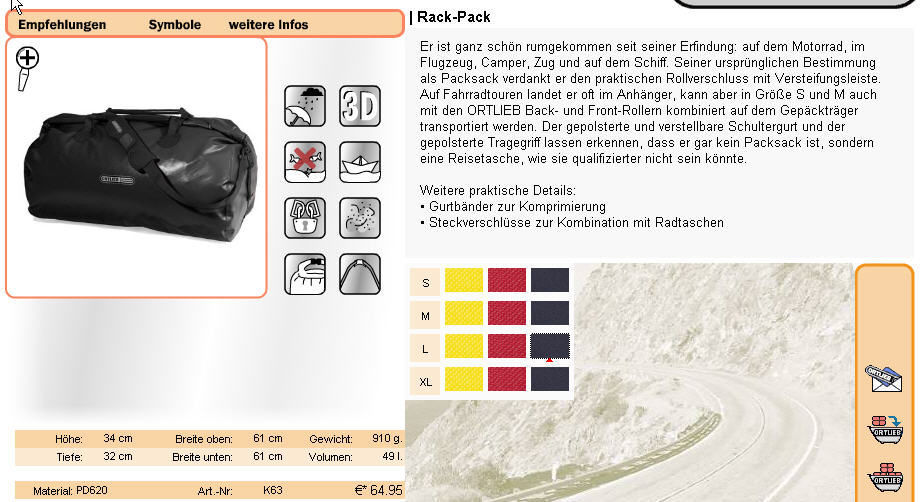 Zur Motorrad-Packtasche von Ortlieb kann ich sagen. Konnte diese eine Woche lang von einem Kollegen borgen.
