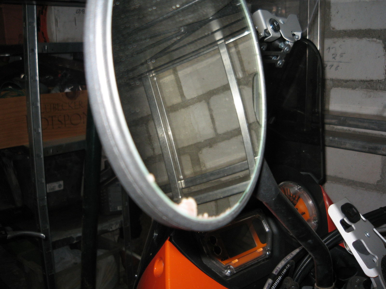 die original Spiegel taugen nicht viel, bei mir sind beide angelaufen, wohl wegen Winterbetrieb, die Stangen rosten übrigens auch sehr gern. Gute Gelegenheit, um auf Klappspiegel umzusteigen,