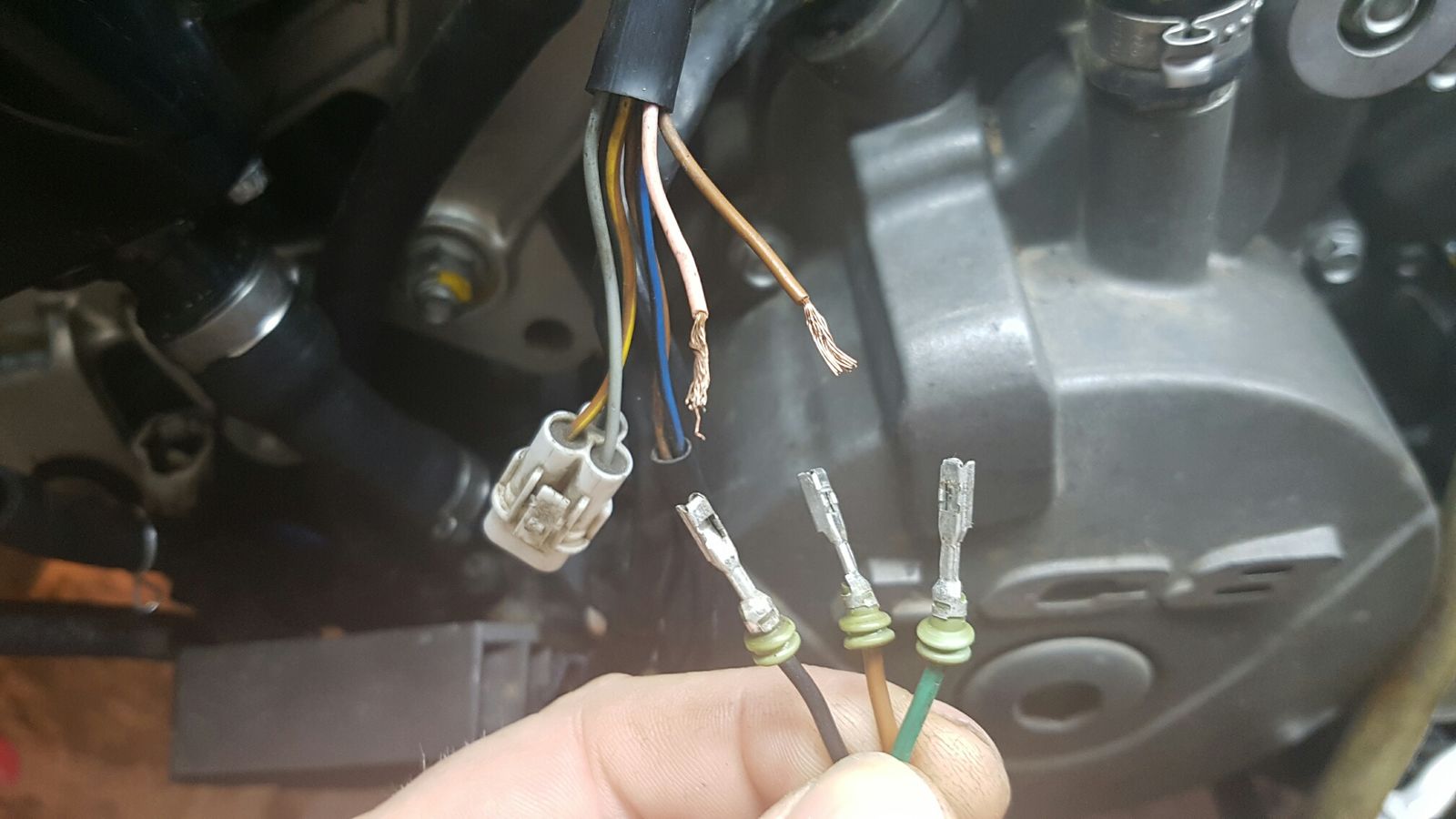 Kurz gesagt: 2 Leitungen kommen vom Kabelbaum, 3 vom Seitenständer.
