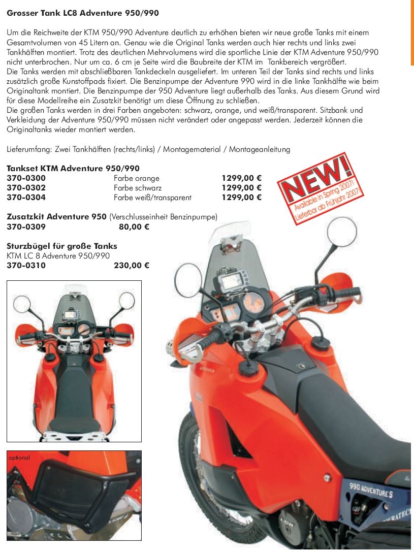 Es gibt eine Rallye-Verkleidung (Katalog S. 476) und die großen Tanks.