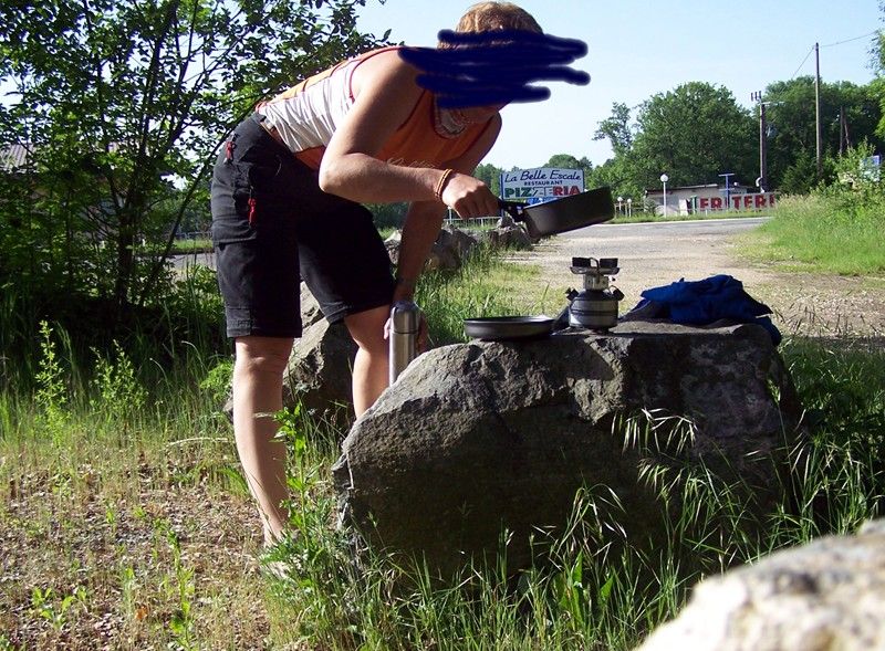 1. Kocher: Die Campingaz-Kocher haben mich genervt... erstmal muß man immer eine Ersatz-Kartusche rumschleppen, die ziemlich Platz kostet und zweitens sind die Kartuschen nicht mehr überall zu kriegen, war früher besser! Im Campingmarkt in Halle führen sie zum Beispiel gar kein Camping-Gaz mehr. Habe mir deshalb einen Benzinkocher von Coleman (Coleman Feather) angeschafft, bei eBay mit Versand für 75 €. Ist eine Menge Heu, aber ich bin absolut zufrieden mit dem Ding!!!