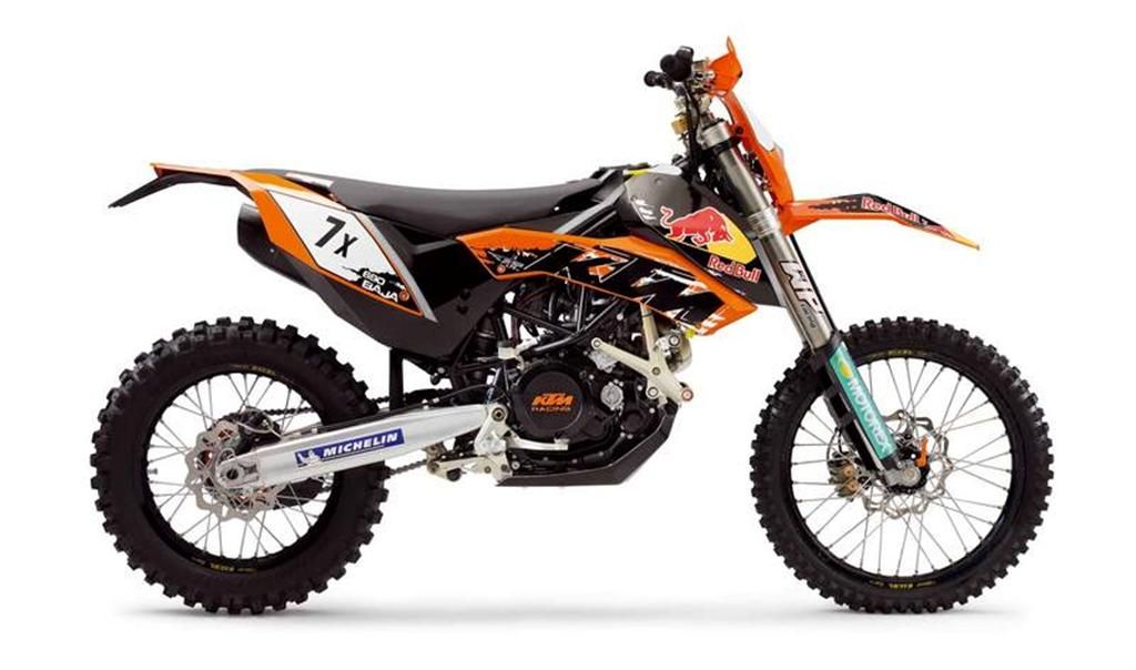 Borne out of the 690 Rally, so successful in the Dakar 2007, the 690 Baja aims combine the advantages of a very light and easily handled Enduro with the outreach and the stability of a rally machine.