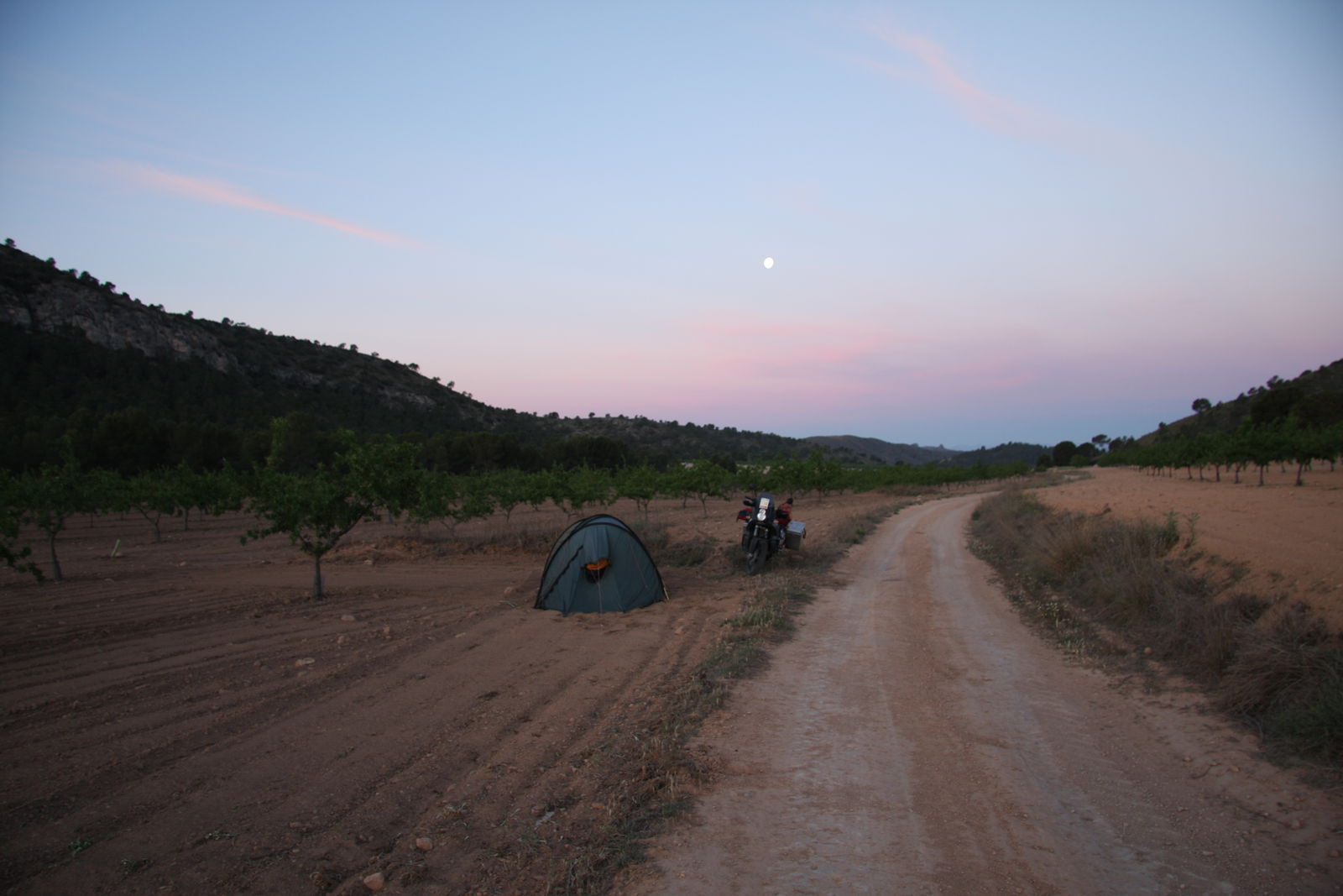 | Erneut habe ich uns ein schönes Plätzchen gefunden zum draußen Schlafen. Weite Sicht und doch allein für uns. |