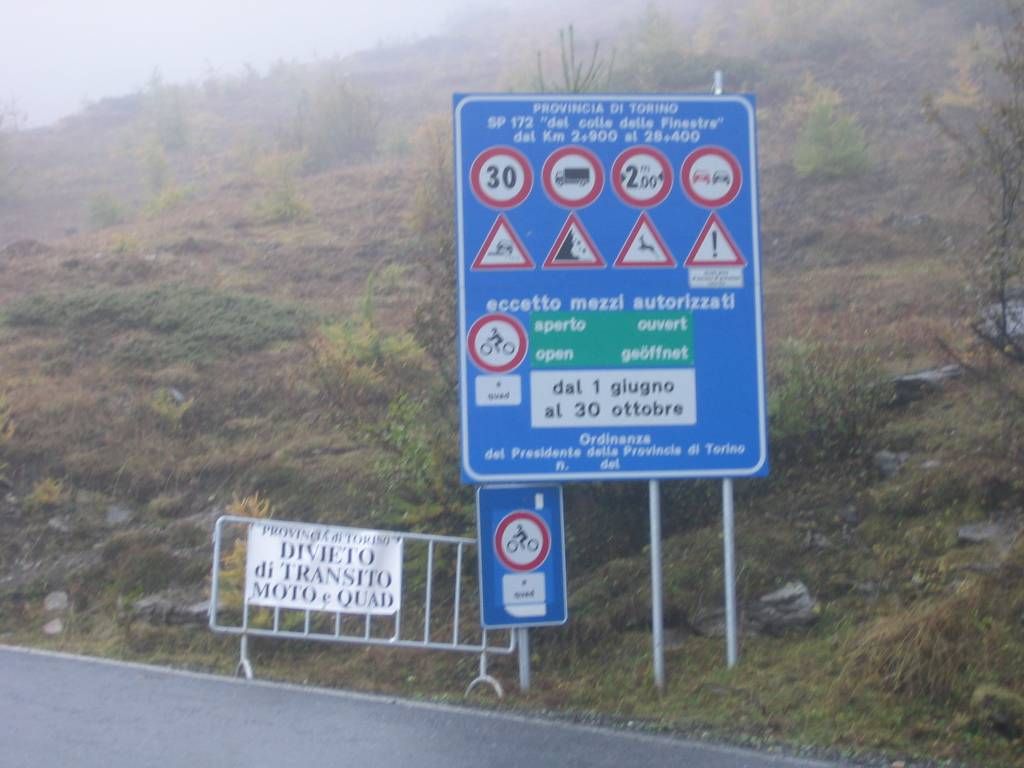 | Zitat von Alpenrouten hat folgendes geschrieben: | | Die Streckensperrung zwischen Meana di Susa und dem Scheitel (Nordrampe), die im Sommer 2007 für Motorräder und Quads galt, wurde für 2008 wieder aufgehoben. Für die Strecke gilt eine Geschwindigkeitsbegrenzung auf 30 km/h sowie eine Wintersperre vom 1. November bis zum 31. Mai. |