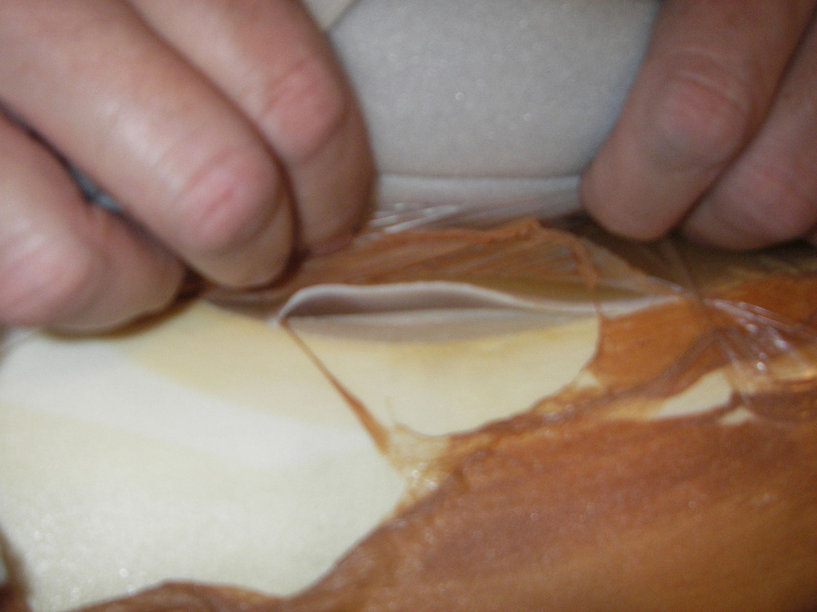 mit der hautfarbenen Folie fixiert. Der Schaumstoff der das Ganze vor dem