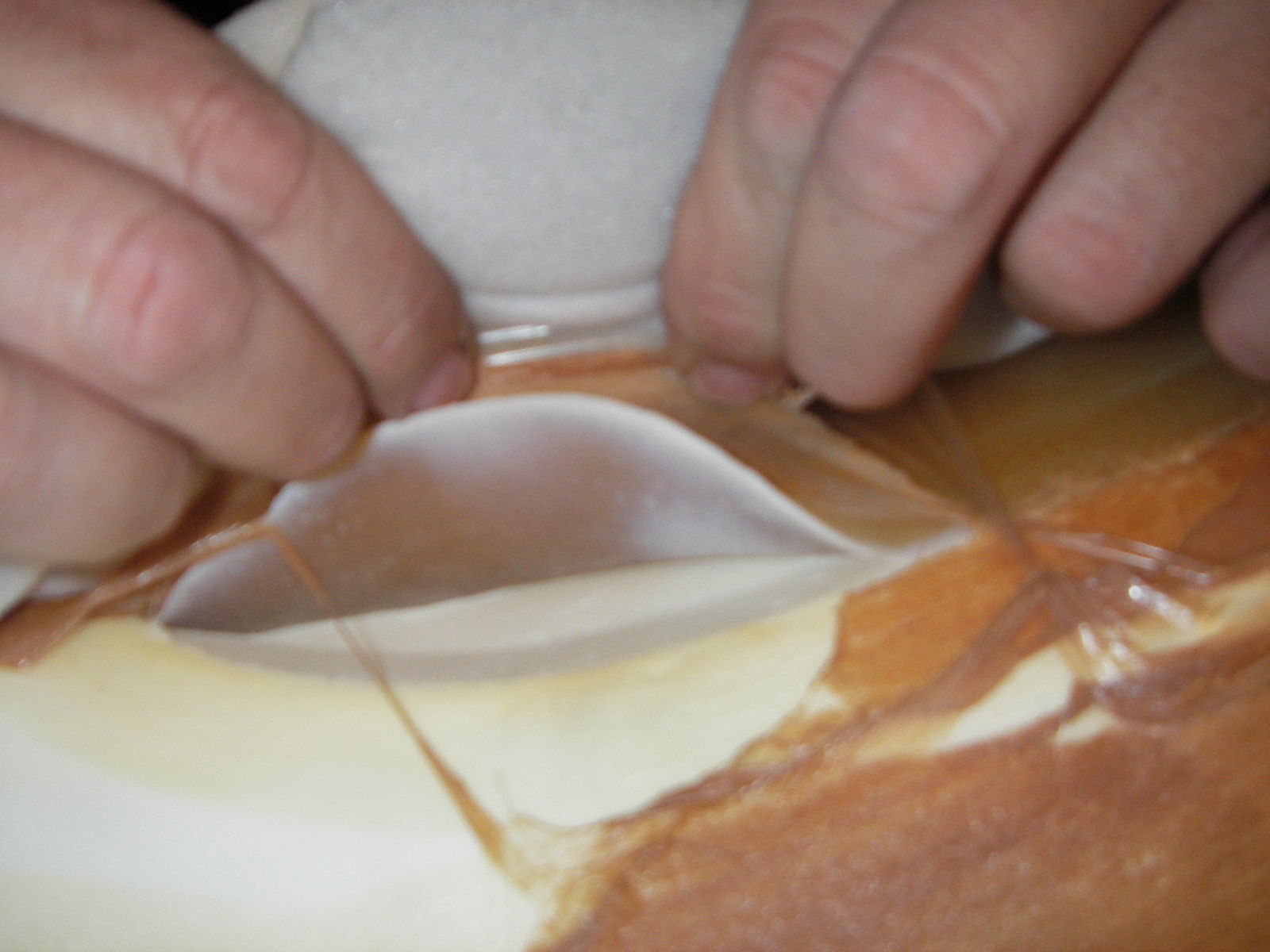 mit der hautfarbenen Folie fixiert. Der Schaumstoff der das Ganze vor dem