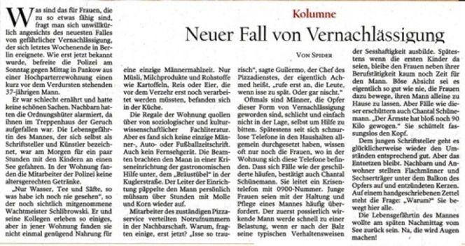 Es gibt bereits Männerhäuser in Deutschland, genau gesagt sind es zwei Stück. Eins steht hier in Berlin (meine neue Heimat - zufällig! ), das andere steht in Niedersachsen im Landkreis Oldenburg westlich von Bremen (meine alte Heimat - zufällig? gruebel ). Die Plätze für uns als Opfer herrschsüchtiger Prügelweiber sind also sehr begrenzt. Da ist rechtzeitiges Anmelden natürlich von Vorteil. Eine Voranmeldung so etwa 24 Stunden nach Einsetzen der Pubertät sollte aber ausreichend sein. Mr. Green