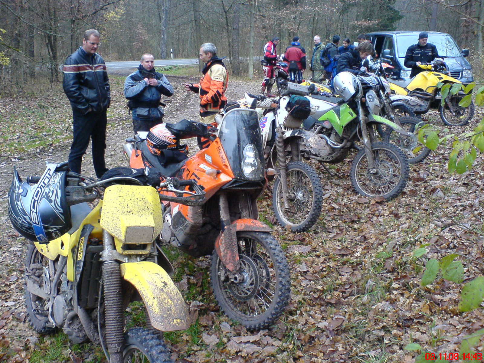 Während die anderen Ihre Roadbooks zusammenlebten machte ich Fotos und mir so meine Gedanken. Beim Prolog klappte der Seitenständer nich rein, aber ich kam ganz gut durch. Nach dem Start kamen wir als erstes in eine Polizeikontrolle, mir wurde nach der Anweisung das Kennzeichen sauber zu machen Gute Fahrt gewünscht, während der arme Thomas 35 € berappen musste. Später fuhr er vor mir einen ordentlichen Steilhang sauber hinauf und kurz danach stürzte er auf der Strasse. Der Daniel und der Henry nahmen mich mit, nachdem alles geklärt war. Ich war ständig am Limit, um den beiden folgen zu können, konnte dabei aber sehr gut lernen. Ich gab mir die größte Mühe die Strecke auf dem Roadbook mit zuverfolgen, mußte aber gelegentlich gleich 2 Seiten umblättern. Ohne Sturz gings so bis ins Ziel, lediglich beim Anhalten im Dunklen bin ich einmal ins leere getreten und umgefallen. Den zweiten Platz habe ich im Wesentlichen dem Können und der Ausrüstung meiner beiden Mitstreitern zu verdanken und weil der Henry einen Buchstaben beim Aufschreiben verschusselt hat.