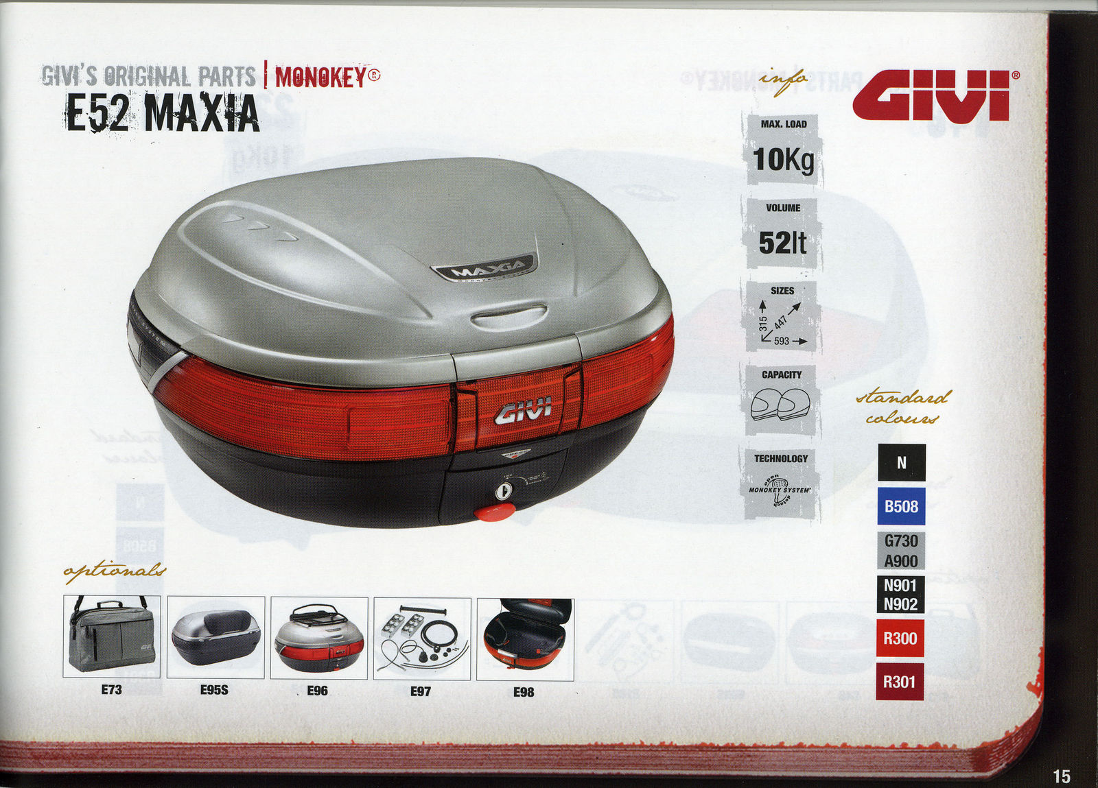 Eine Woche Gepaeck passt allemal und bei hohen Geschwindigkeiten merke ich keinen Unterschied. Sieht nicht schoen aus aber das stoert mich nicht. Dieses Model Givi Maxia 52 benutze ich seit 6 Jahren und es wandert von Motorrad zu Motorrad.