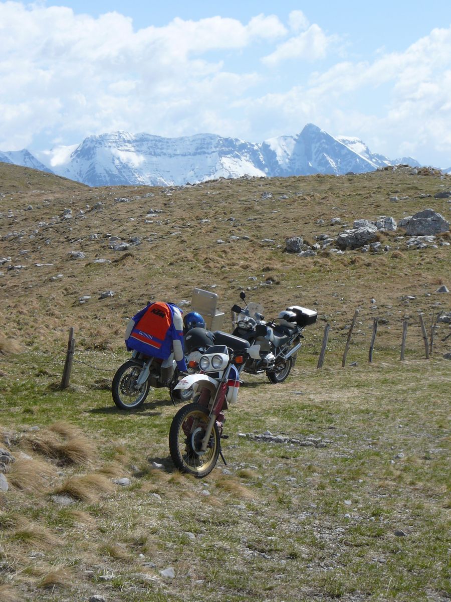 Soll das etwa da sein - hinter den Mopeds wir haben jedenfalls Ende Mai 2008 dort überhaupt keine Crosserspuren auf der Wiese gesehen, obwohl wir zu Fuß bestimmt noch 100 bis 200 m (keine Höhenmeter ) vom Startplatz der Paraglider nach "oben" marschiert sind.