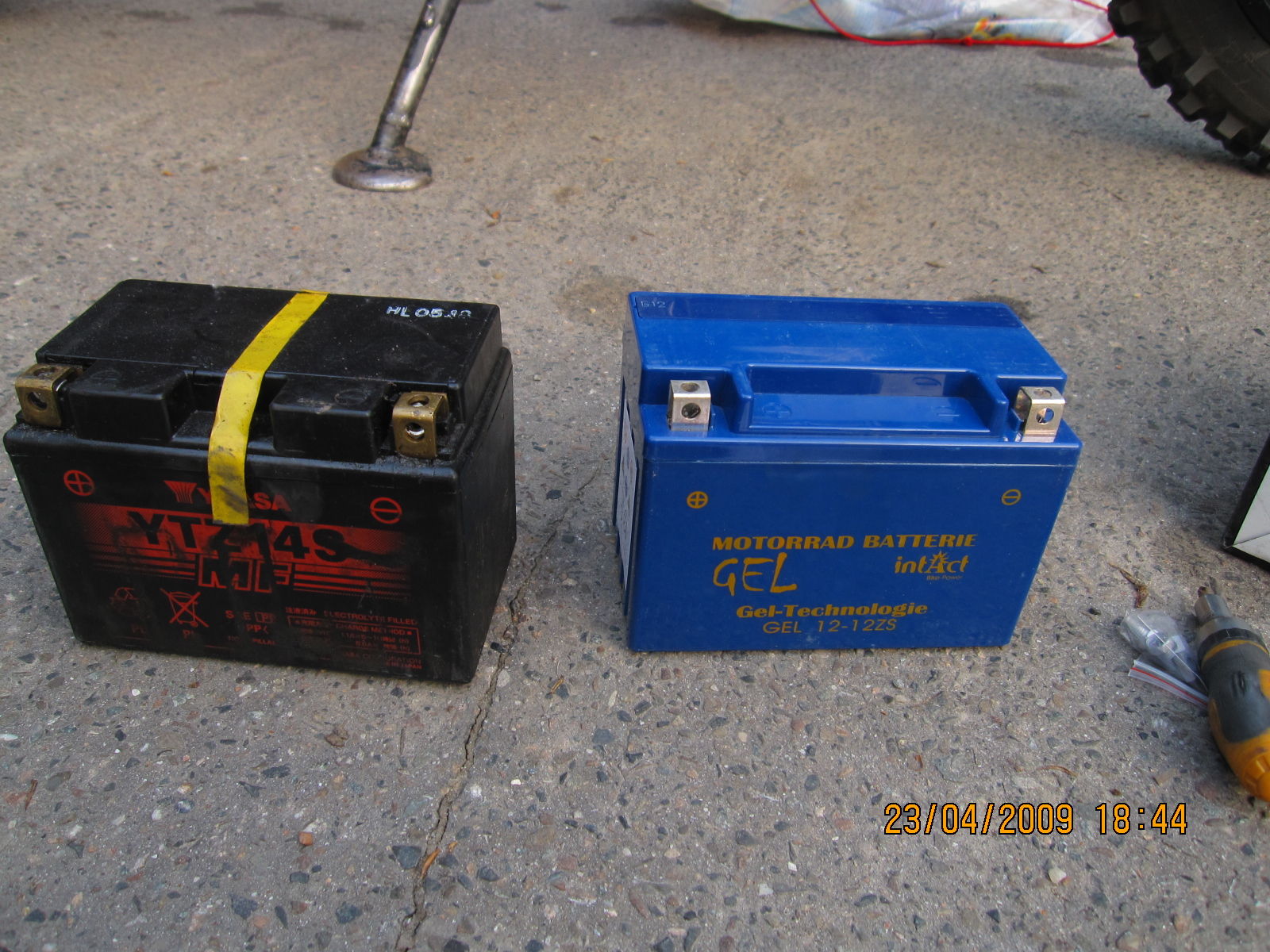 mein Yuasa Akku ist nach 1,5 Jahren ebenfalls verstorben, ersetzen wollte ich ihn durch eine Blei-Gel-Batterie von Tecno, gleiche Spezifikation, identischer Typ, extra vollgeladen - Anlasserrelais rasselt, Motor dreht aber nicht durch, bringt den Startstrom nicht.