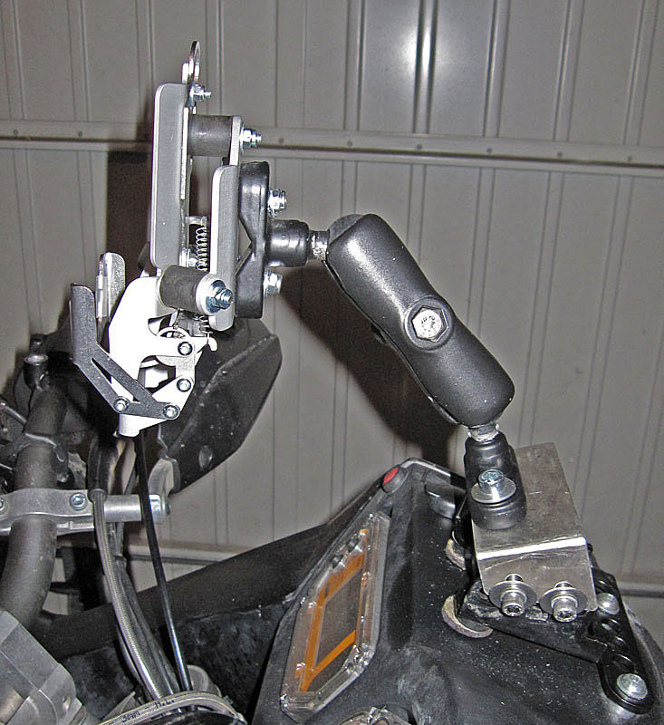 an den tt halter im cockpit habe ich ein blech mit einem kugelkopf befestigt, auf den dann mit dem ram mount system die tt halterung rangesetzt ist. ich kann so das gps in jede erdenkliche position bringen und habe es immer gut im sichtfeld - ausserdem ist es ziemlich vibrationsfrei.