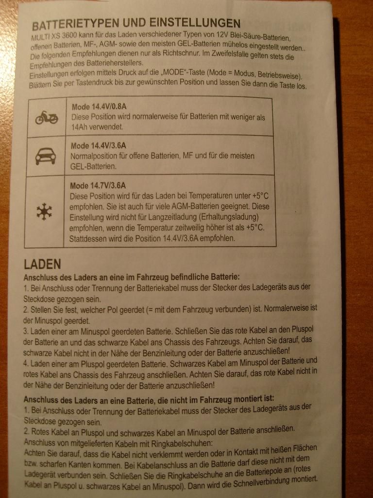 Es gibt dann Ladeprogramme mit pulsierenden Spannungen. Stark pulsierend für den Versuch, evtl. vorhandene Sulfatierung rückgängig zu machen. Schwach pulsierend fürs Dauerladen (s. Foto der Anleitung). Desweiteren sind Ladegeräte nicht beliebig stark (unterschiedliche Maximalströme).