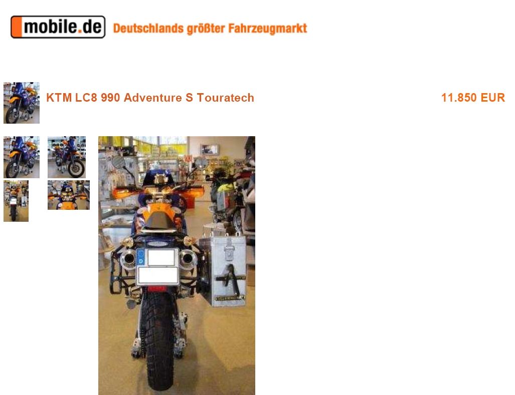Anmeldungsdatum: 08.02.2007 Beiträge insgesamt: 702 KTM LC8 Adv 990 S, 2007 → 70.000 km