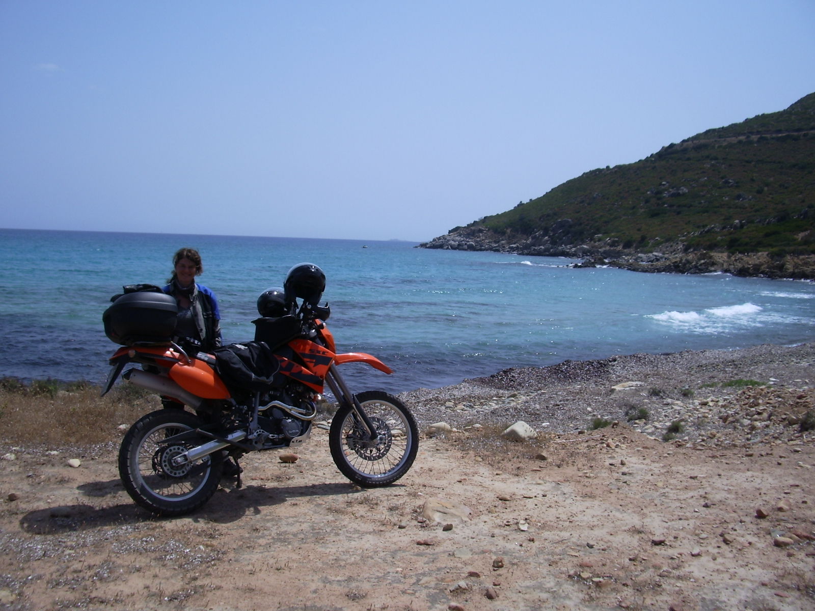 .... so jetzt ma kurze Zusammenfassung, ich war wie gesagt mit Womo/Bus dort und die SXC diente als Beiboot, also bitte ich zu berücksichtigen das es kein Moppedurlaub/Enduro Urlaub war. Enduro Ausflüge waren daher eher eingeschränkt, da ich entweder zu zweit auf dem Mopped oder alleine unterwegs war, und mit Defekt in der Einsamkeit liegen bleiben macht eben keinen Spass. Noch dazu hab ich die Batterie der SXC kurz zuvor geschrottet und mein Haxen war auch im Eimer, also antreten bei 20° Hanglage war sehr abenteuerlich (ja die selige XT hatte wenigstens den Kicker auf der richtigen Seite), so genug jetzt...