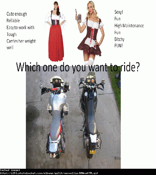 in letzter Zeit wurde ja einiges diskutiert von wegen KTM oder nicht doch besser die BMW ... dann wird viel über technische Daten gesprochen, Thema Alltagstauglichkeit ...
