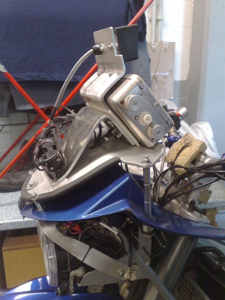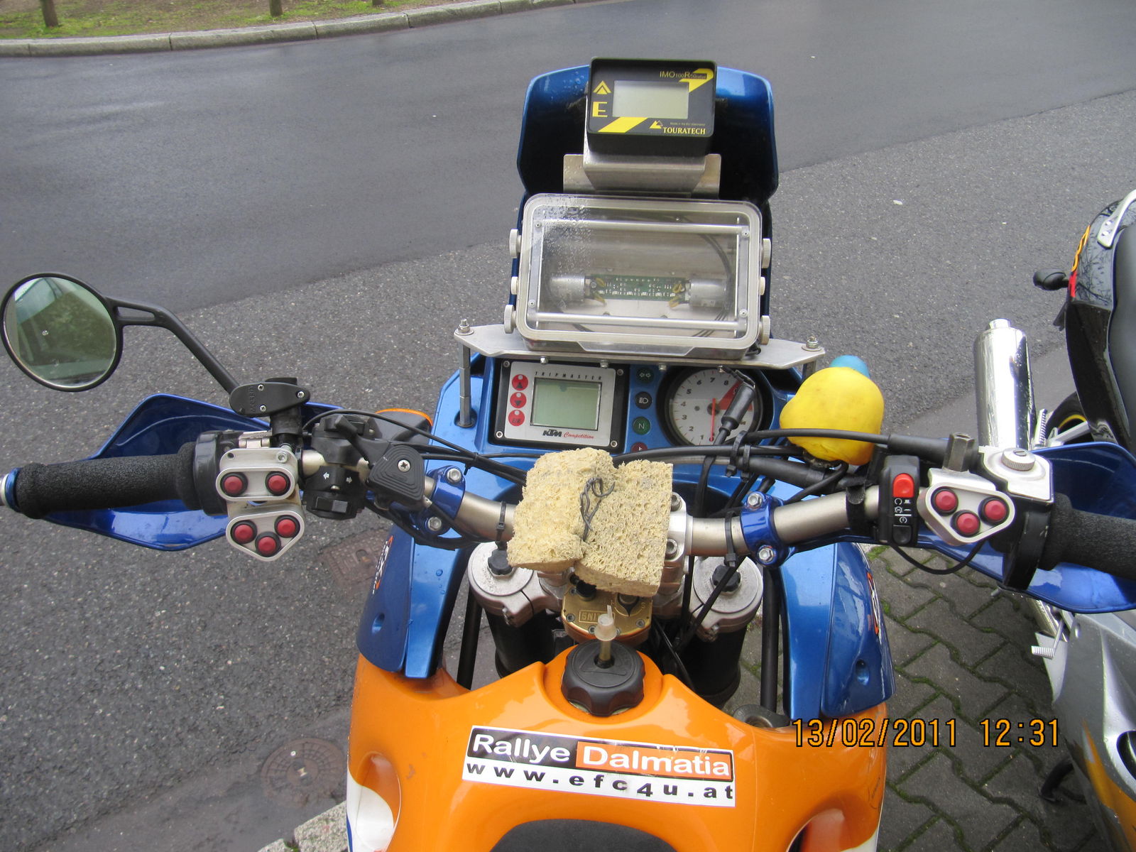 Darum blieb der Originalkram an seinem Platz, Navi und ICO oben auf's Cockpit unterhalb der Scheibe, Roadbook auf den Lenker. Die klobigen Schalter, die TD verwendet und die Motobau präferiert, habe ich nicht benutzt, sondern kleinere, da ich sonst Platzprobleme am Lenker gehabt hätte.