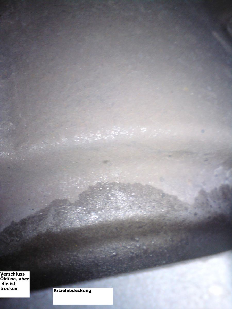 Leider nur ein miserables Handyfoto. Oberhalb der Ritzelabdeckung aufgenommen. Dort befindet sich langsam größer werdend, regelmäßig ein Ölfleck. Sieht aus, als ob der aus der Region des Ritzels kommt.