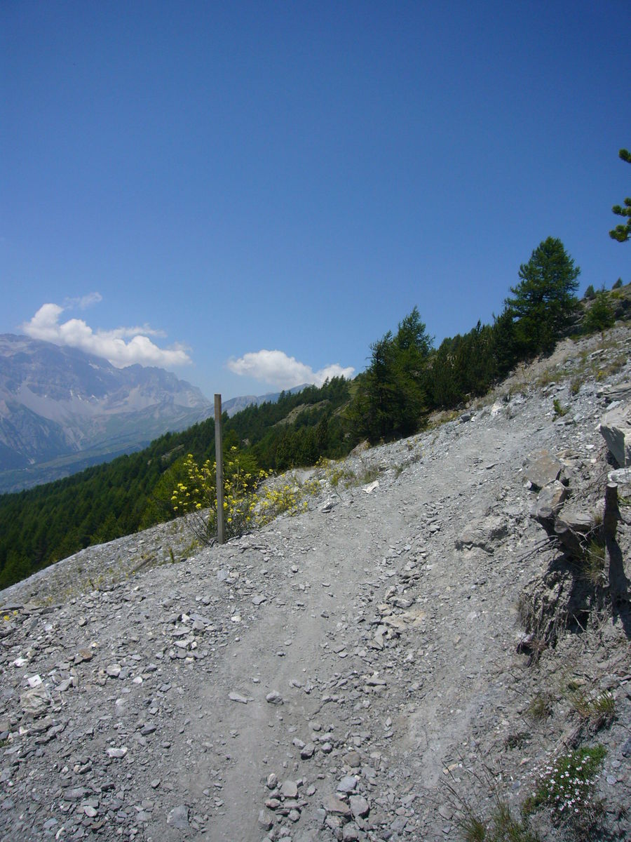 Ich kann mich dunkel erinnern, daß es 2005 einen Abrutsch gab in einem sehr felsigen Waldstück gab. Jetzt weiß ich aber nicht mehr genau ob es bergauf gesehen nach oder vor der Wegkreuzung (westliche Anfahrt von Royères, östliche Anfahrt Salbertrand) war. Ab dieser Kreuzung führt nur noch ein Weg südlich zum Jafferau. Die Nordroute, also von Rochemolles aus ist ne Skipiste und daher eher unspektakulär.