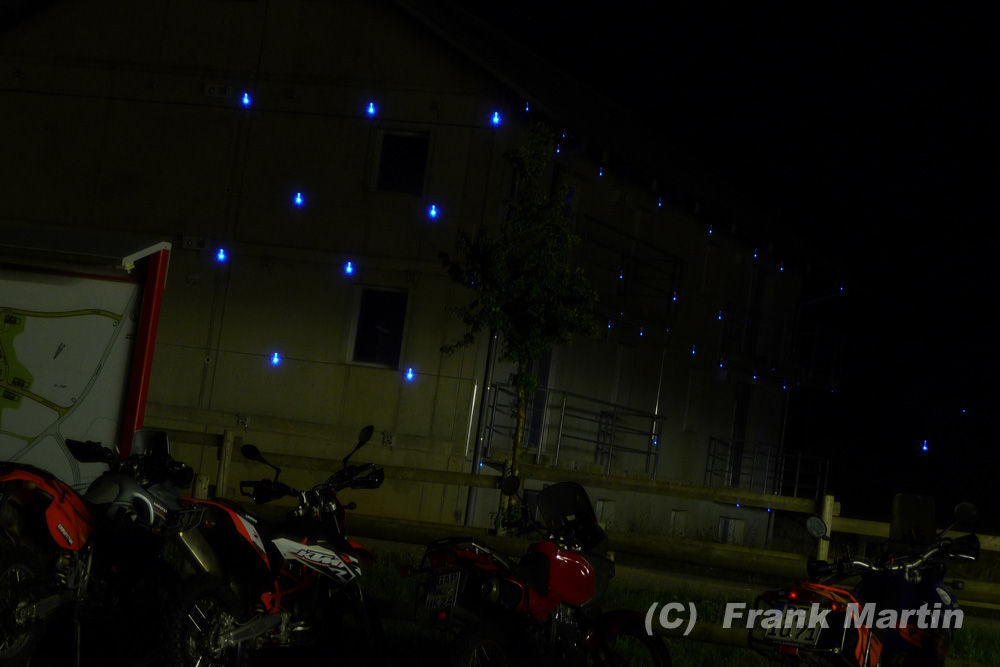 | die blauen Lichter und viele Sensoren dienen simulierten Kampfhandlungen - schließlich sind wir auf einem Armeegelände |