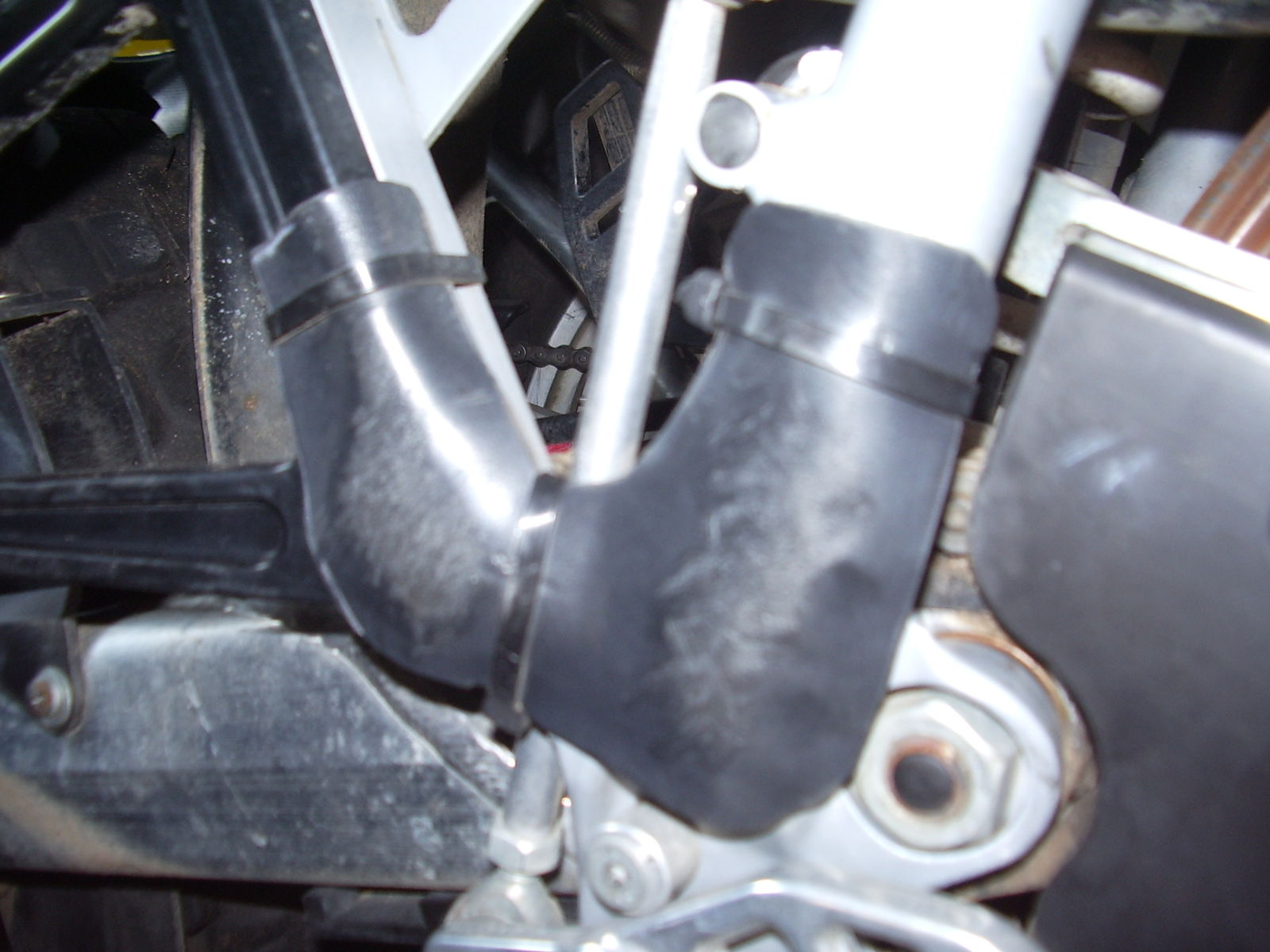 Außerdem ist das jetzt die gewünschte 2 Sitzer-Version. Die Mutter die die Schwingenachse hält, habe ich bewusst nicht mit dem Rahmenschützer überdeckt, denn es gibt bei allen Rahmenschützern, die man kaufen kann(bsp. Acerbis) das Problem, dass der Kickstarter zum einen, wenn er voll eingeklappt ist und zum anderen beim Kicken am Schützer schleift.