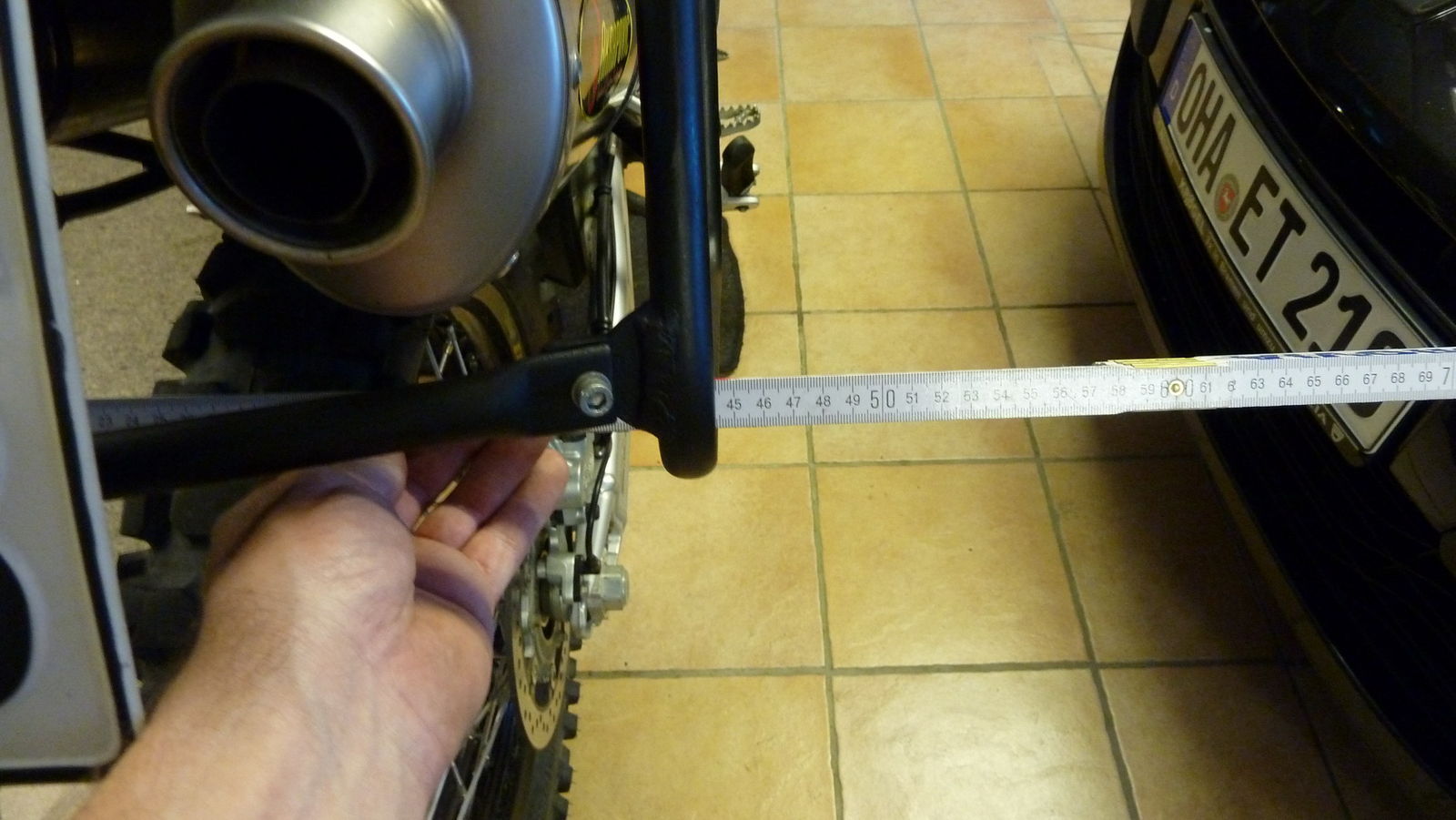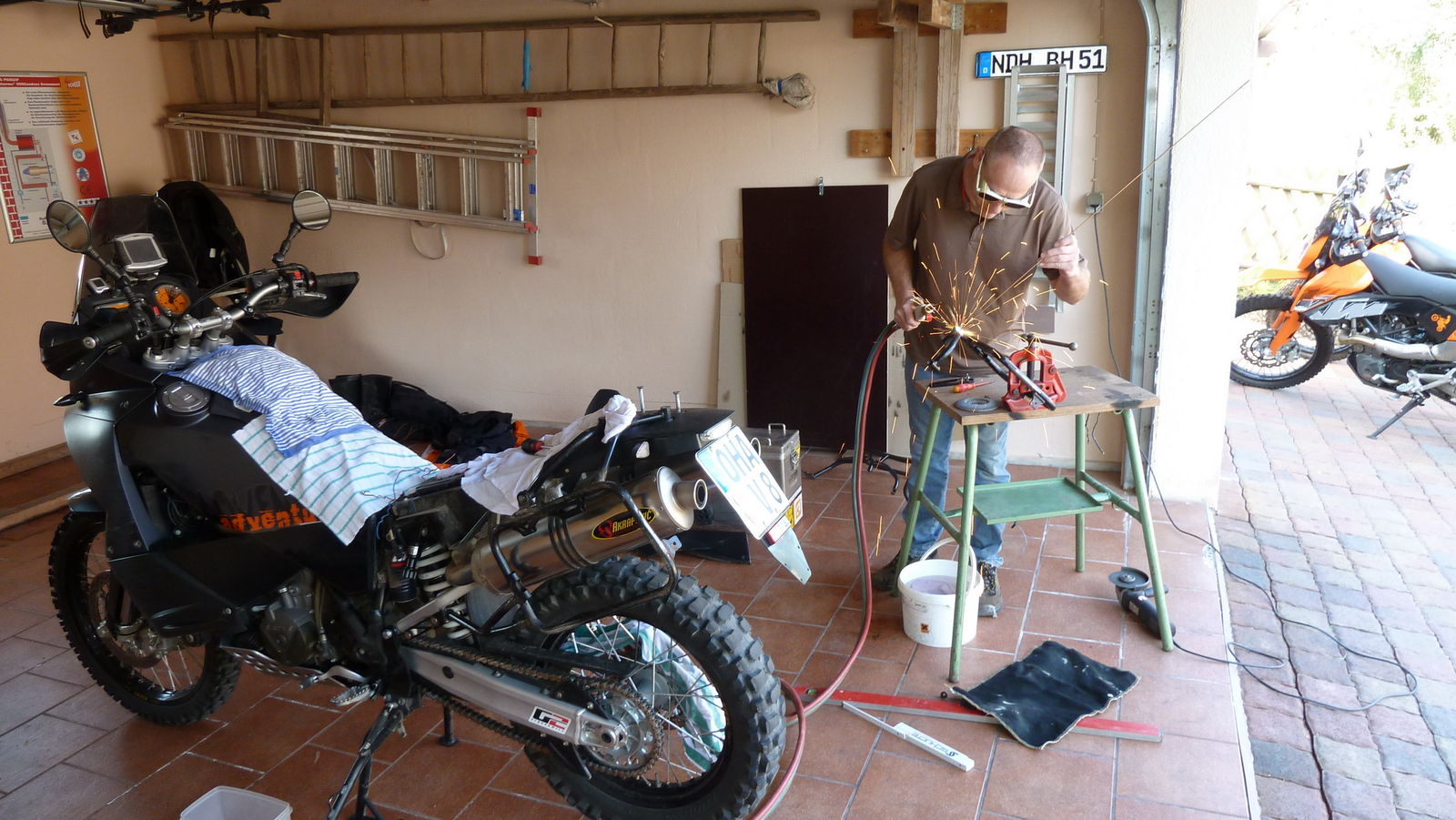 So, hat zwar etwas gedauert, aber endlich hab ich´s geschafft, die TT-Träger schmaler zu machen. Nach dem Vorbild vom Joe Pichler habe ich die Träger schmaler gemacht indem der obere Verbindungssteg raus kam, sowie die restlichen Halterungen entsprechend gekürzt bzw. gebogen wurden. Nachdem mein Versuch mit e-schweißen nicht so glücklich verlief hat mir Enduroronni freundlicherweise mit autogenschweißen weitergeholfen. Das ging dann auch gleich viel besser. Danke dafür noch mal an dieser Stelle!Nach zig-mal an- und abbauen war dann alles nach unserer Zufriedenheit geschweißt. Wobei es recht schwierig war auf beiden Seiten ein symetrisches Bild hinzukriegen. Sollte eigentlich ganz einfach sein, da wir ja auf beiden Seiten die gleichen Änderungen vorgenommen hatten, dauerte dann aber doch ein bisschen. Das Ergebniss sind 10cm weniger in der Breite, so daß Außenkante bis Außenkante der Träger nur noch knapp 45cm beträgt. Die Seitenteile mußten auch bearbeitet werden, da die Träger jetzt dichter anliegen. Da sieht man dann auch gleich etwas mehr von den Akras Very Happy