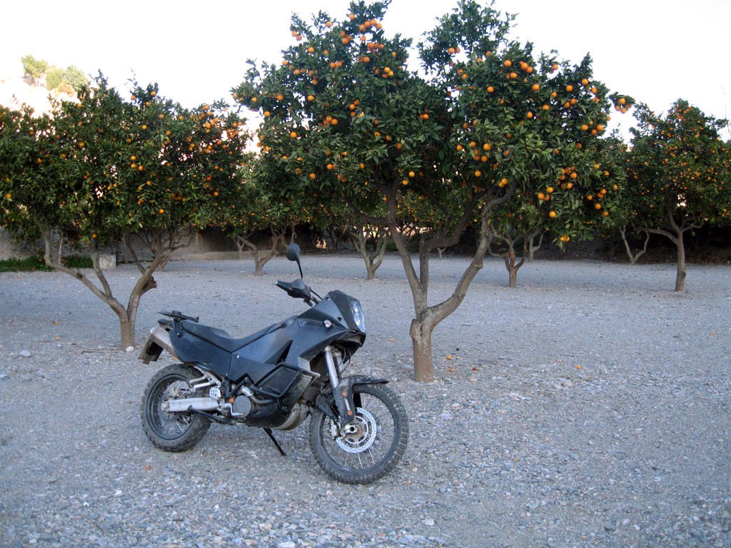 Die Tour nähert sich dem Ende, heute haben wir eine letzte gemeinsame Runde gedreht: Eigentlich wollten wir noch einmal in die Berge, aber diesmal war's mir zu kalt. Eine heimliche Crossstrecke entdeckt und ausprobiert. Nochmal über' Berg und nochmal ans Meer, heute abend nochmal Tapas ... das Mopped, das nach Hause darf, ist bereits verstaut.