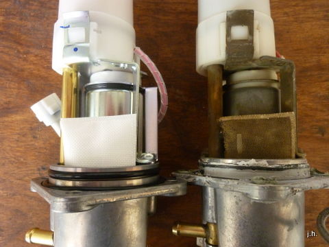 die filter habe ich natürlich schon mehrfach gescheckt, gereinigt und/oder ersetzt. was meint ihr eigentlich wie oft ich diese scheiss-pumpe hier schon ein- und ausgebaut habe? (ein ca. 1cm breiter ring eines alten vorderradschlauches zusammen mit etwas dichtungsmasse ergibt übrigens eine prima benzinpumpendichtung). auch die schnellkupllung im druckschlauch, benzinhähne und tankbelüftung, alles x-fach gescheckt, aber es ist die pumpe.