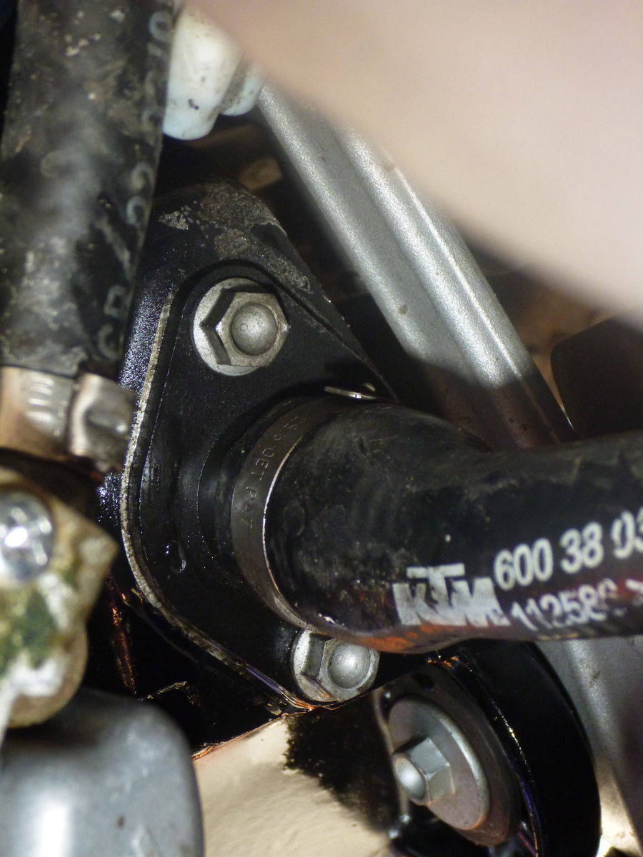 Danach ca. 200 km gefahren und dann wegen viel Arbeit 4 Tage das Bike am Seitenständer in der Garage abgestellt. PLÖTZLICH EIN ÖLVERLUST, AM BODEN EIN KLEINER ÖLFLECK!!!