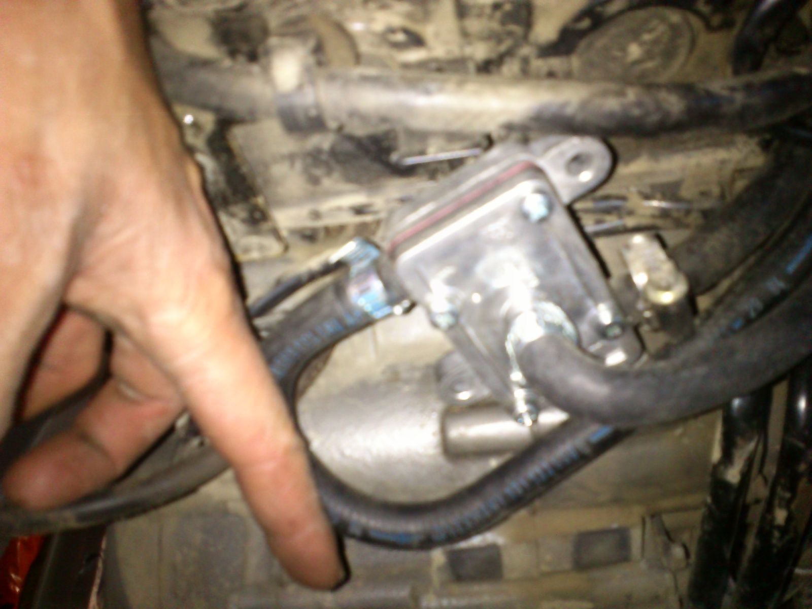 dicker Schlauch zum Kurbelgehäuse entlüften der oben auf den LuftfilterKasten geht. Den hab ich abgebaut und den oberen Bogen der die richtige Biegung hat auf die Hülse der Entlüftung gesteckt.