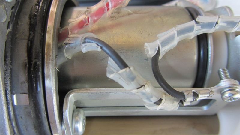 1) Die Kunststoffummantelung für die beiden Stromkabel hat begonnen sich aufzulösen. Siehe Bild 1.