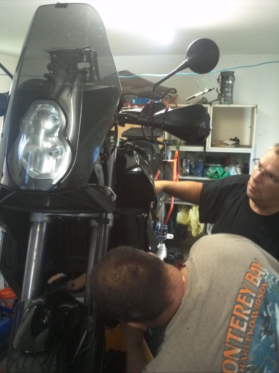 Dank eines sehr guten Freundes und Ex KTM Meisters, haben wir nun gebrauchte gute Ersatzteile gestern Abend bekommen und zu dritt die Kathie in die Mangel genommen. Nach drei Stunden (inklusive dem Selbstbau einer Poltradabziehschraube) schnurrte sie wieder.