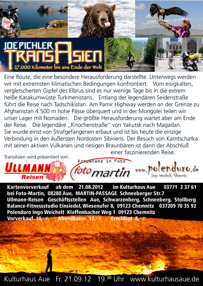 Verfasst am : So, 19. Aug 2012, 12:24 Titel: Joe Pichler / TransAsien / 21.9.12 / Kulturhaus Aue