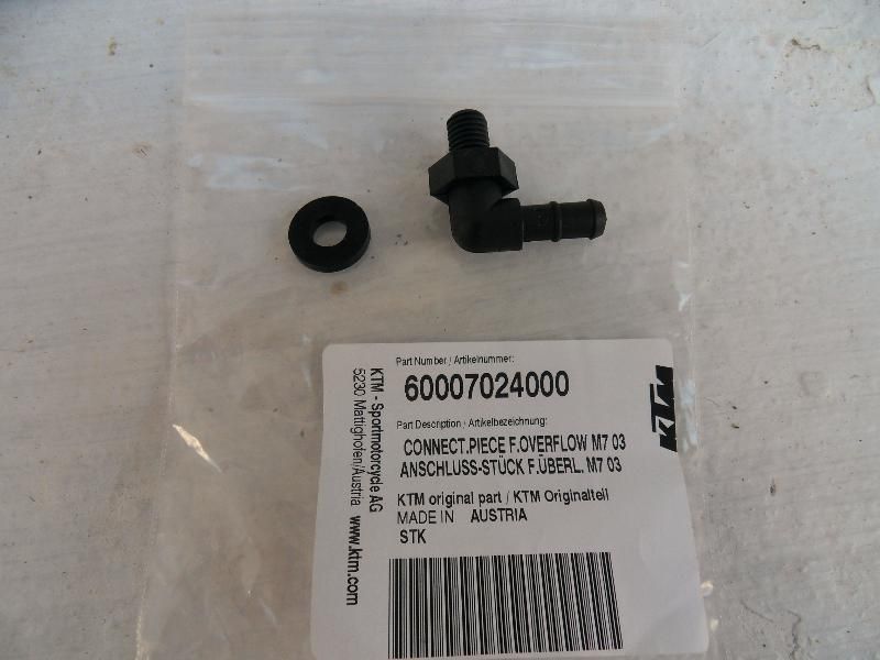 Nachdem es hier bekannter Weise keine KTM Vertretung gibt Mad , mußte ich mir kurzfristig selber helfen, die Verbindung also bis zum Eintreffen des Erstazteiles (nochmals vielen Dank an die Hilfe der beiden Forums-Mitglieder für Beschaffung des Ersatzteiles!!!) provisorisch lösen. Hab dazu den größeren Rest des Anschlußstückes an dem Plastik-Sechskant mit einem 7er Bohrer aufgebohrt, das kleine Reststück im Tank mit Sekundenkleber eingestrichen und das Anschlußstück drüber geschoben. Stabil soweit!