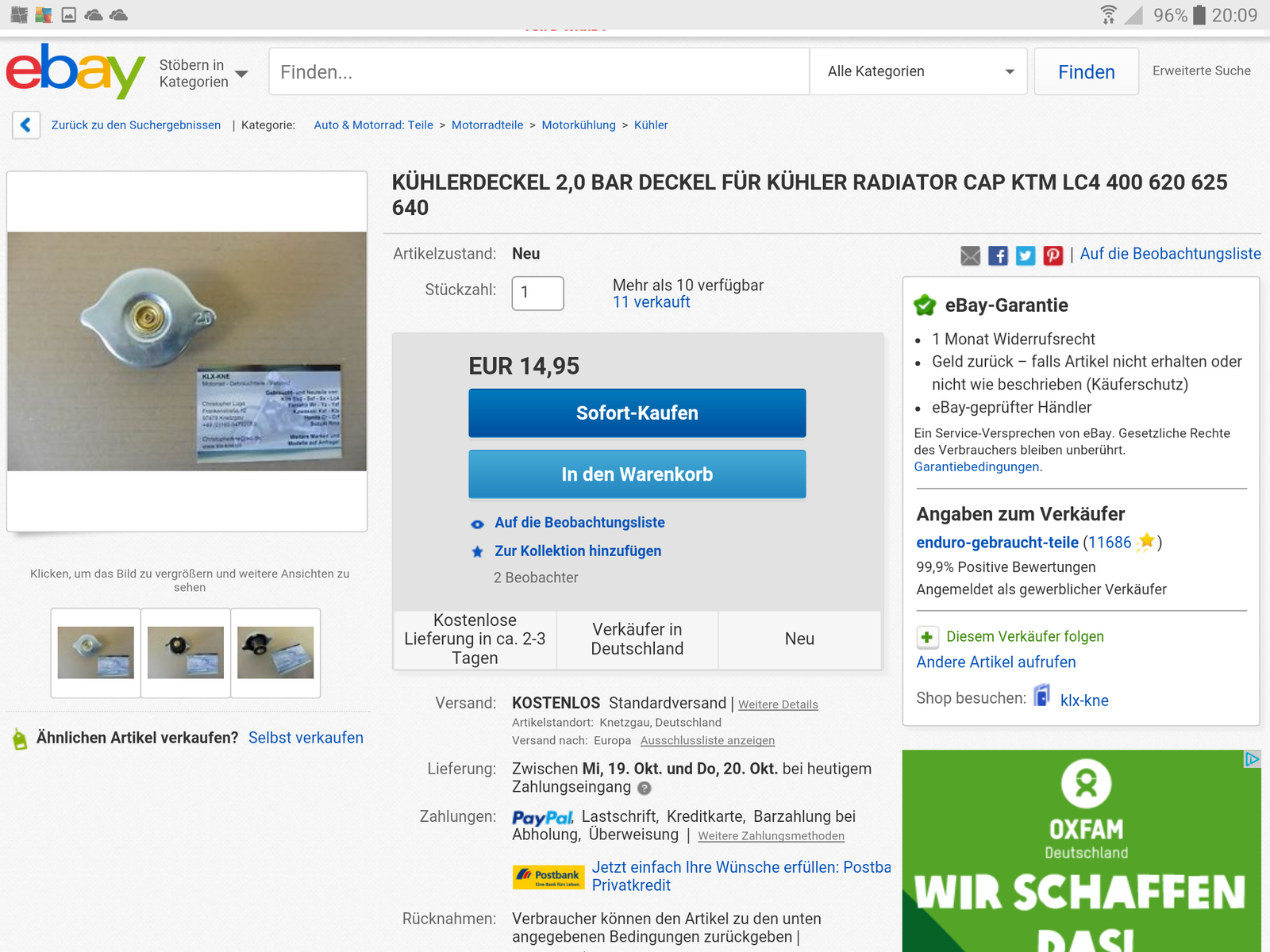 Neuen Kühlerverschluss bestellt.