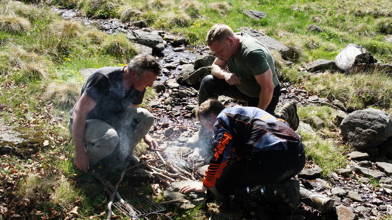 Fetter Speck, Brot, Kuhkäse, Salzgurken, Einfachbrannt und Doppelbrand beim Revierförster