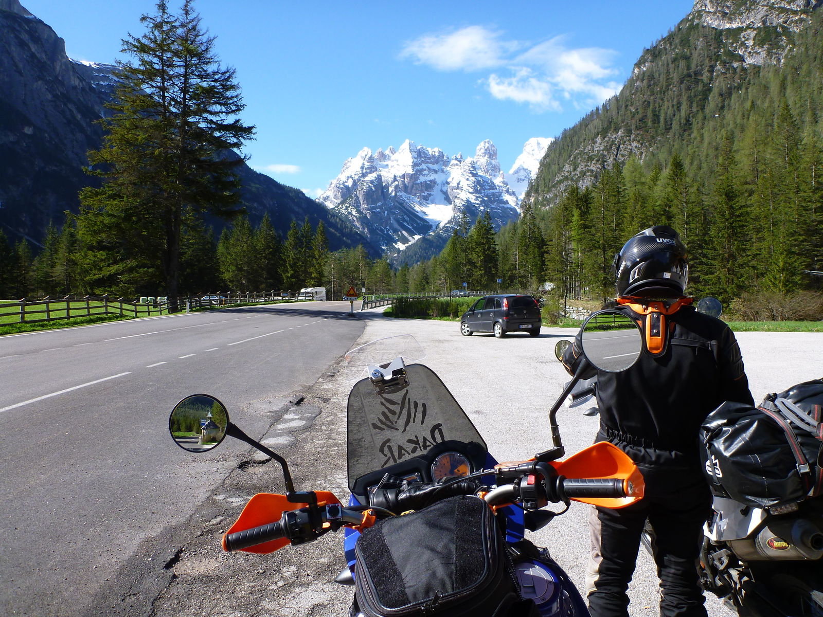 von zaga über lischiazze(I) und resiutta nach amaro und tolmezzo. weiter über casolari vinadia, villa santina und ovaro nach vigo di cadore, calalco di cadore, san vito di cadore nach cortina d'ampezzo. von dort dann nach arabba, vigo di fassa, nova levante um dann nach bozen zu gelangen.
